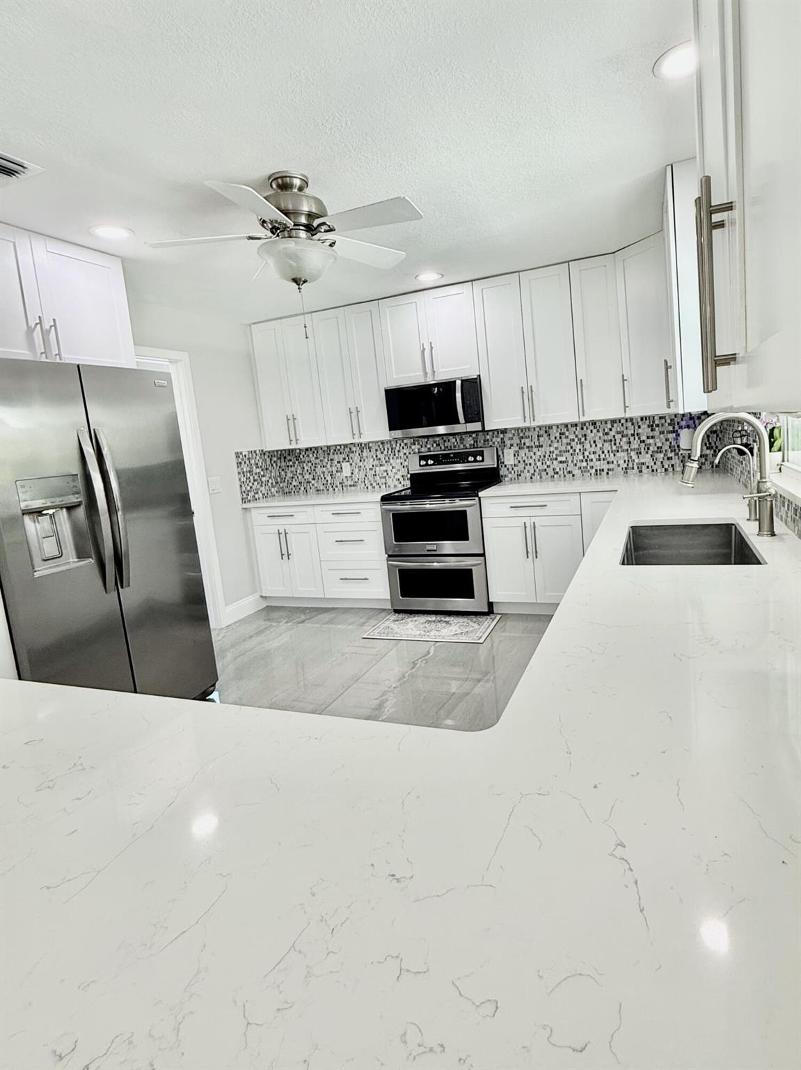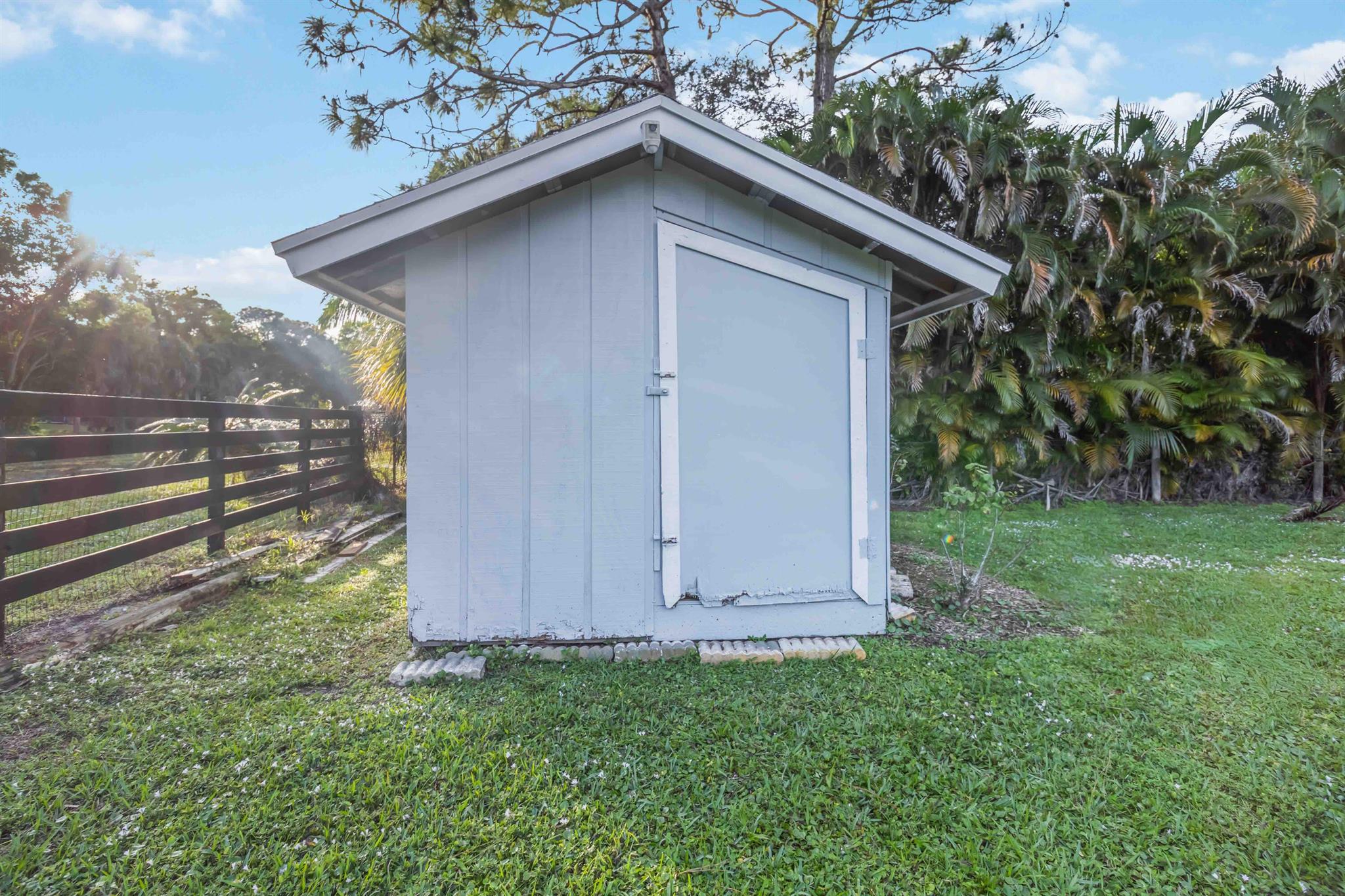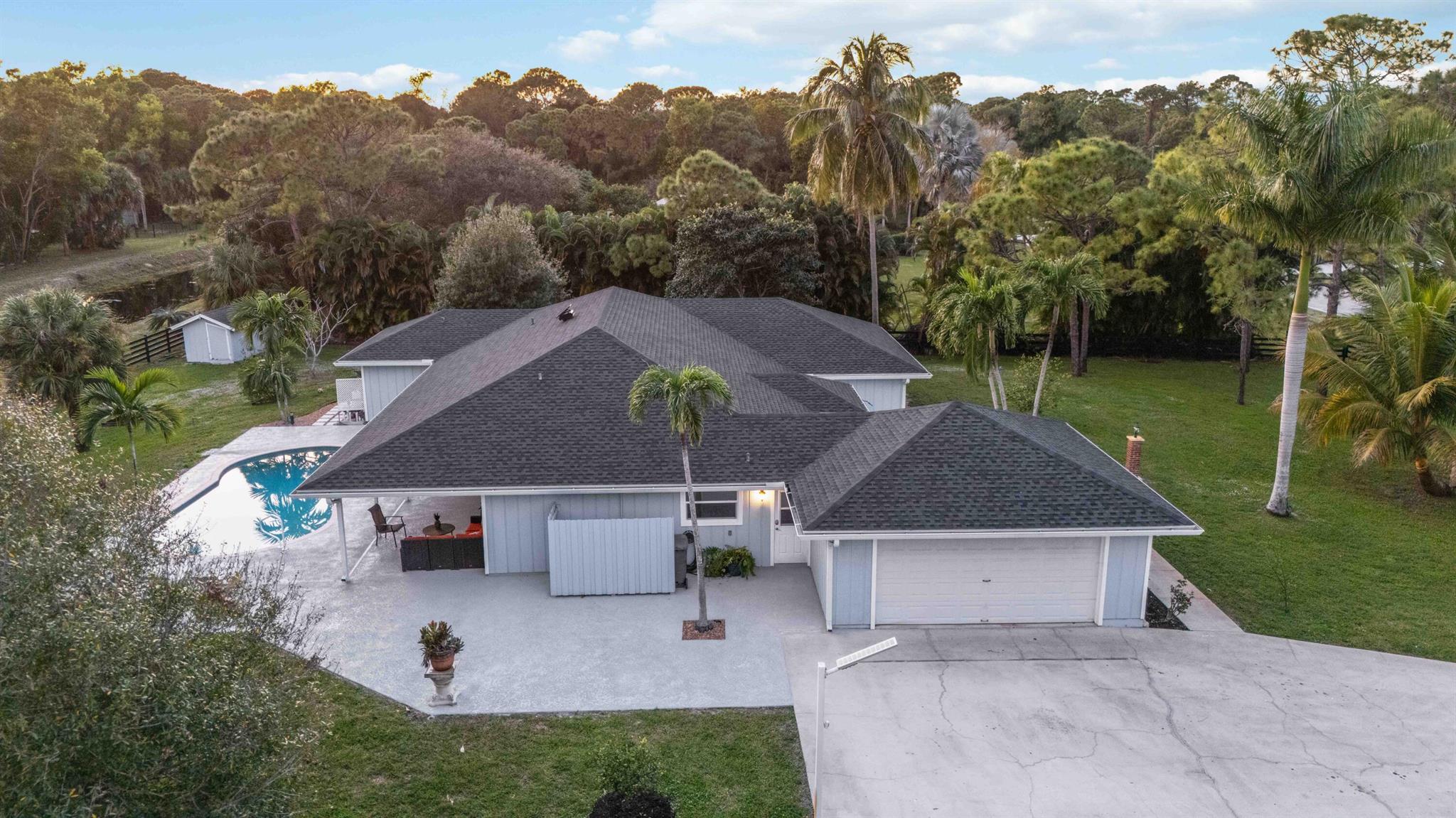 Renovated 4/2.5/2 pool home on 1.16 acres in Palm Beach Country Estates. NO HOA, paved roads, located near the front of the community and includes a 30x60 pole barn. Features include solid wood 42'' kitchen cabinets, quartz countertops, SS Frigidaire Gallery appliances, cabinet under-lighting, and 4 ft x4 ft. Imported Spanish porcelain tile throughout. Open concept living. Updated porcelain baths, 15x30 6-ft deep pool with cool deck coating, 2024 roof, impact windows, and epoxy-finished garage floor. Also includes a 12x24 chicken coop w/10x10 storage. 50 amp service at the pole barn to run fifth wheels or any RV/Charger for electric cars. Fully fenced & gated. Bring your family, toys, horses, and chickens--room for all!