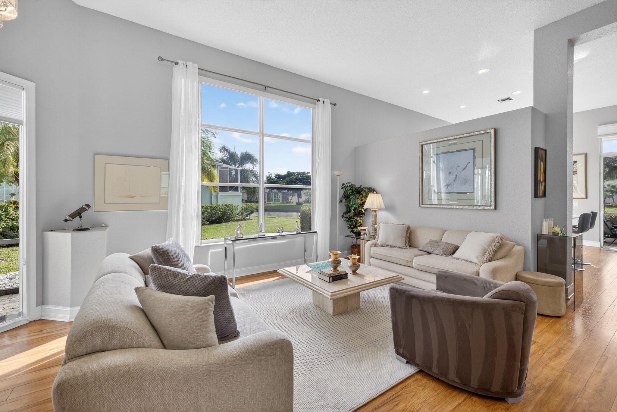 Experience breathtaking water views from the widest part of the lake in this stunning, move-in ready home located in an oversized pie-shaped lot! Tucked away in a private cul-de-sac with lush, updated landscaping, this bright and airy residence features lake vistas from the living room, kitchen, and primary suite. The remodeled kitchen is a chef's dream with shaker cabinets, pull-outs, under-cabinet lighting, and stainless steel appliances. Upgrades include high-grade laminate floors, newer bedroom carpet, bathroom floors and fresh paint throughout. Enjoy peace of mind with a 2011 roof, brand new 2025 AC, 2023 impact-resistance garage door, and full accordion shutters. Relax in your screened, covered outdoor oasis. A true gem waiting for you!