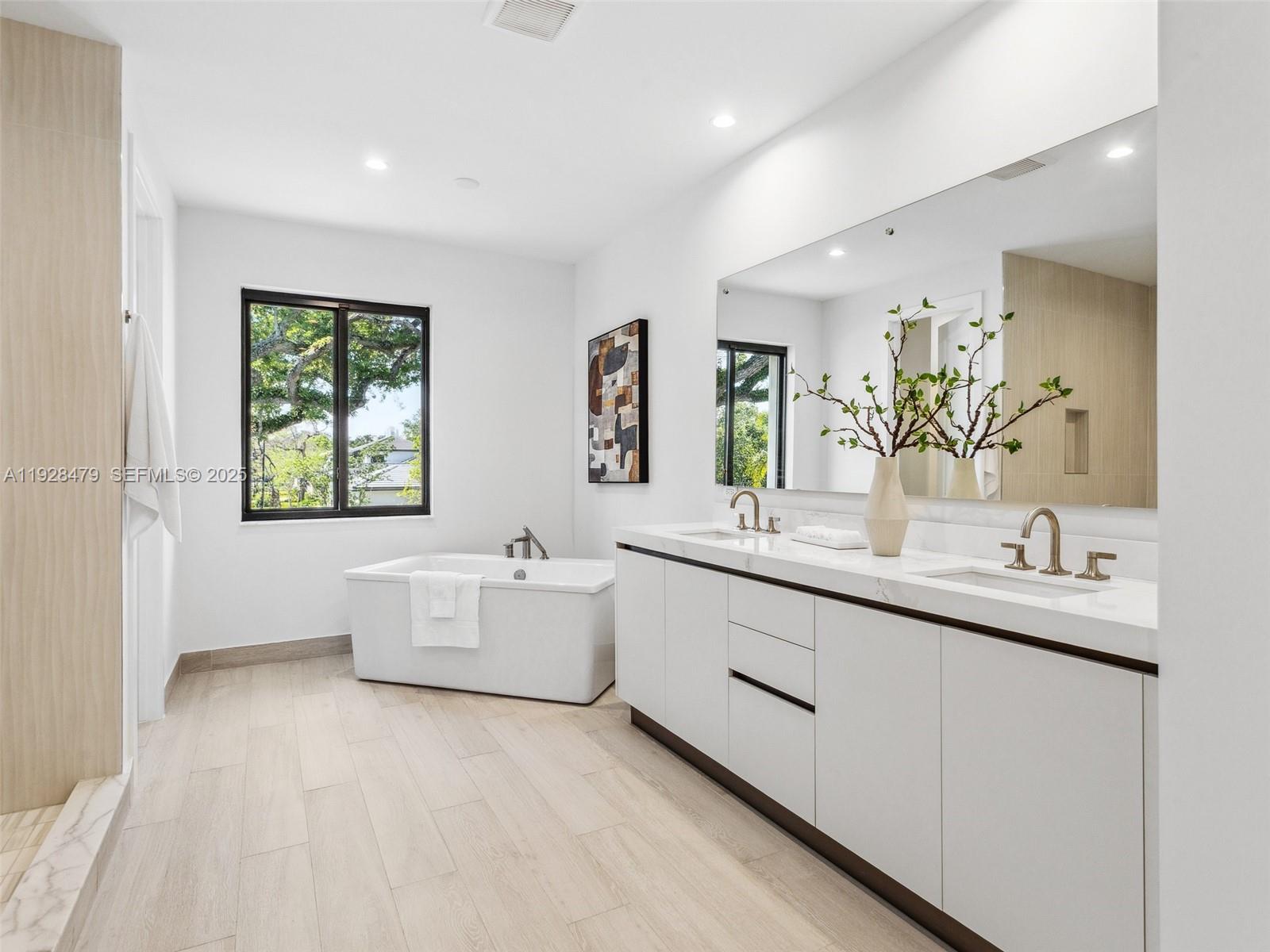 Stunning New Estate in the Gated Community of Pine Rockland Estates with 4,143 SF! Situated on a 14,072 sq. ft. lot, this two-story estate boasts massive entertaining spaces, featuring 4 bedrooms + large den, 3.5 baths, and two 1-car garages. The chef’s kitchen is a showstopper with sleek cabinetry, Wolf/Sub-Zero panel-ready appliances, and a spacious island perfect for entertaining. This home features TWO PRIMARY SUITES one on the first floor and another on the second each designed as a private retreat. The upstairs primary offers a spa-like bathroom with two water closets and two huge walk-in closets. Outdoors, the spacious lot provides plenty of room for a dream backyard oasis whether you’re envisioning a pool, outdoor kitchen, or lush landscaping.