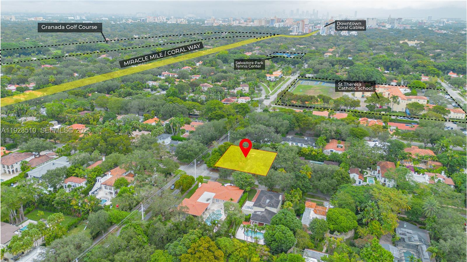 Rare opportunity in Coral Gables! The home sits on the most prestigious street in the Gables. This expansive, oversized corner lot offers significant potential. It is NOT historically designated—renovate or expand with complete flexibility—the interior impresses with soaring wooden-beam ceilings and a classic fireplace. The upgraded kitchen features granite countertops, a matching backsplash, and a gas stove. Tile and hardwood floors run throughout the home—a perfect canvas in a prime location.