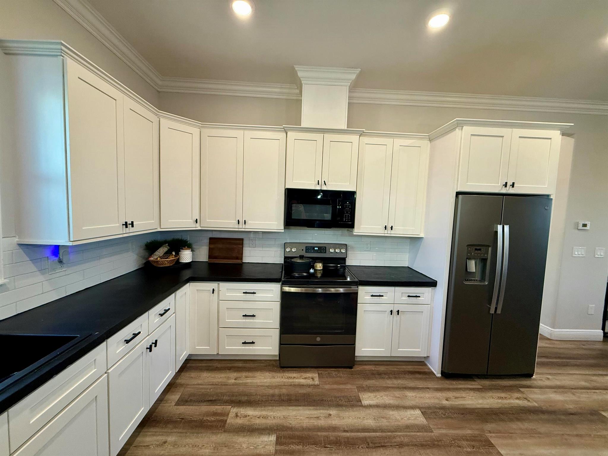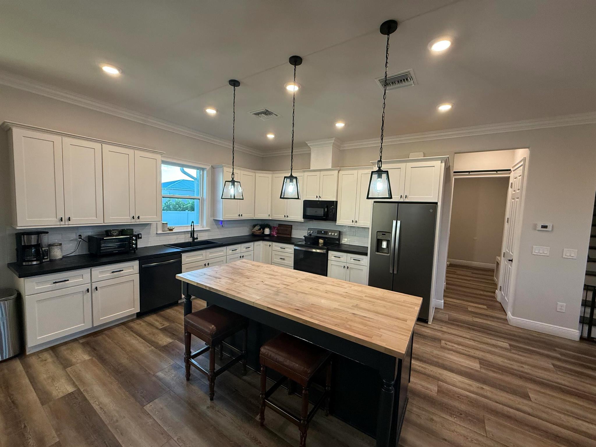Welcome to your dream home! This charming 4-bedroom, 2-bath house features a desirable split floor plan, offering both privacy and convenience. Enjoy the elegance and durability of vinyl flooring throughout. The primary bedroom is located downstairs along with two guest rooms. Upstairs, you'll find a spacious living area and an additional bedroom, perfect for guests or a home office. The large mudroom off the garage is ideal for keeping things organized, and the fenced-in backyard and back porch provide ample space for outdoor relaxation and entertainment. Don't miss this fantastic opportunity!
