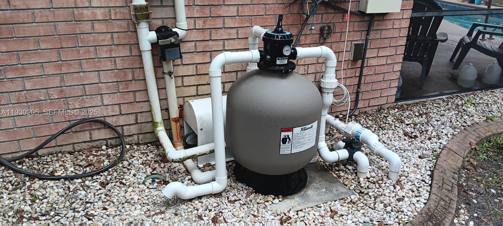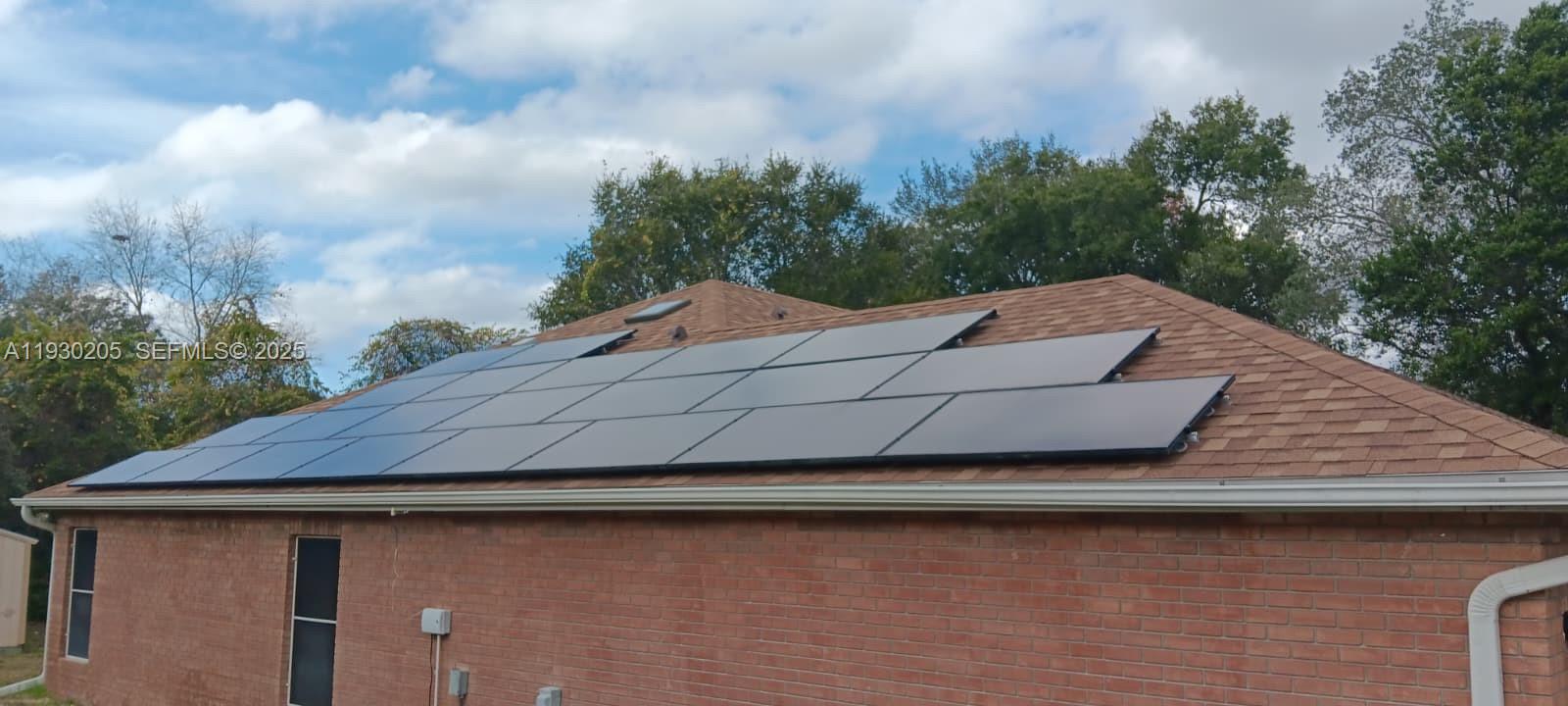 Custom built three-bedroom two-bathroom pool home with no HOA. Set back on a spacious lot with no rear neighbors and wooded views, this well-maintained home offers a formal living area, open family room, and a functional kitchen with induction cooktop, breakfast bar, and eat in space. The private primary suite features his and hers walk in closets and a bath with dual sinks, jetted tub, separate shower, and direct access to the pool. Secondary bedrooms offer new carpet and solar screens and share a full bathroom with skylight. The screened pool area includes an auto cleaner, child safety fence, solar blanket, pool pump motor replaced in 2021, and a new pool filter system in 2023. Recent updates include a new roof in 2023, A C replaced in 2023, whole house water filtration system installed in 2022, foam insulation, R30 attic insulation, solar panels with buyer to assume $131 monthly payment, an 8x10 storage shed, and a two-car garage with power roll up screen. A one-year home warranty is included.