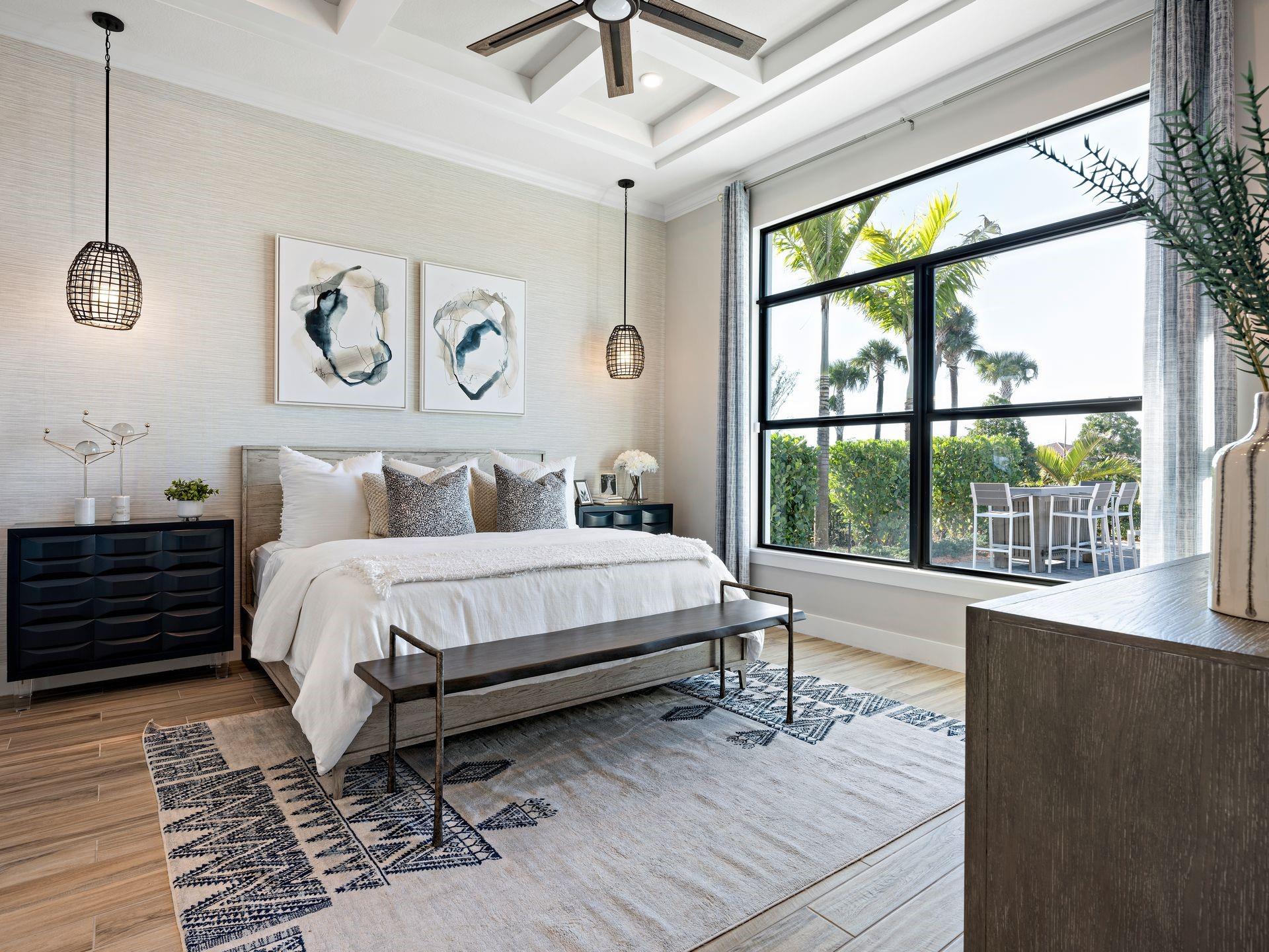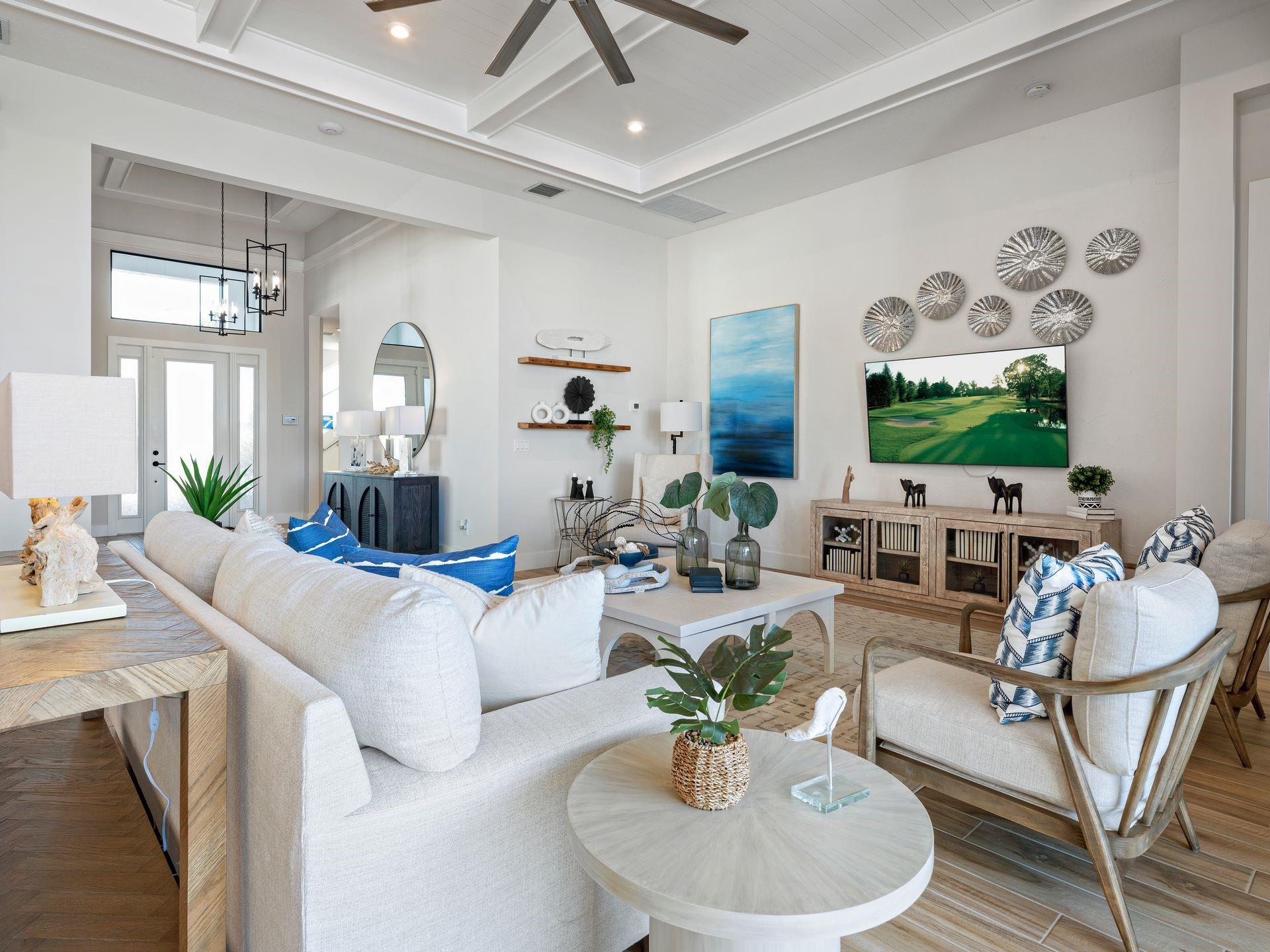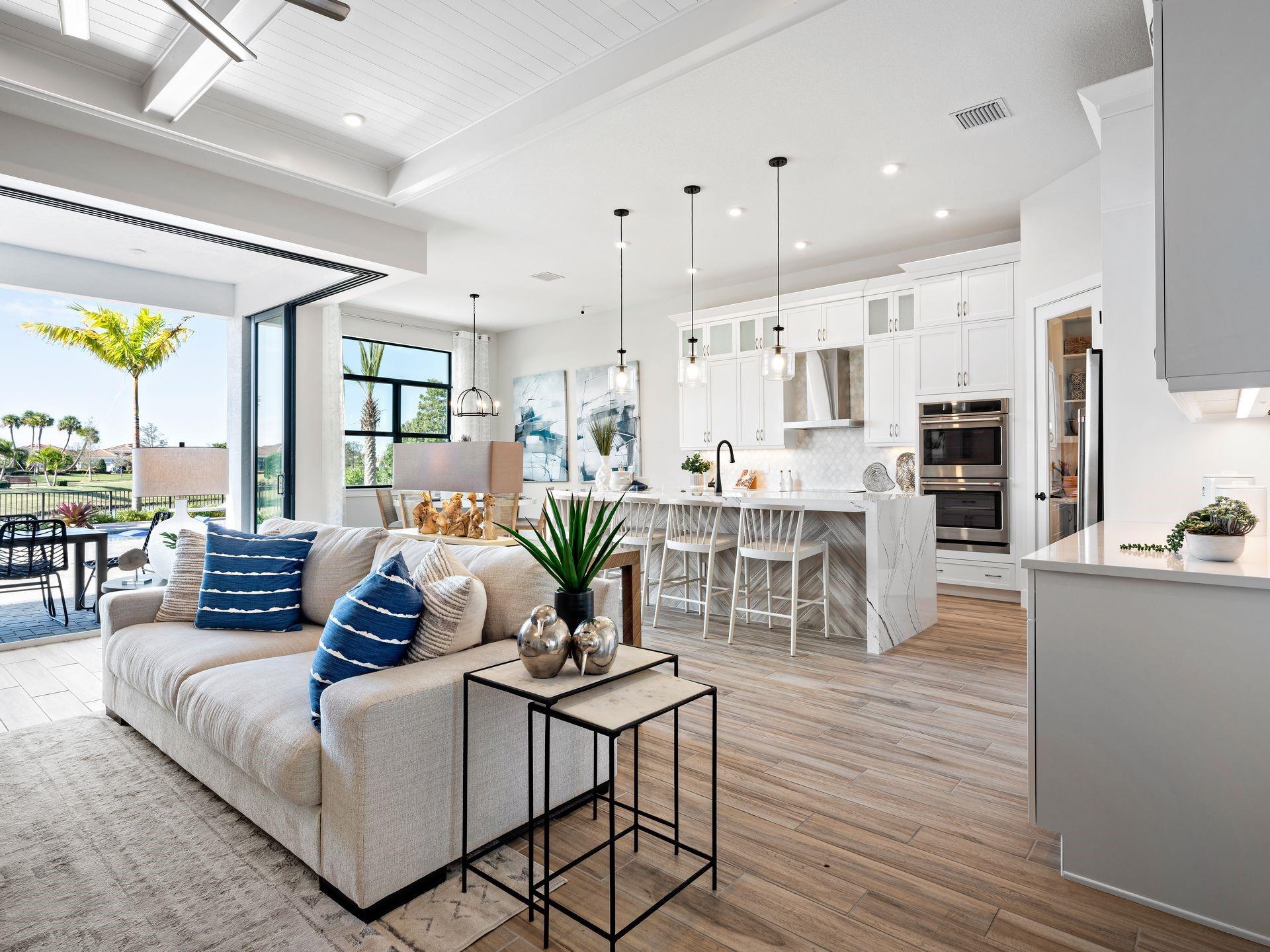 Discover luxury living at PGA Village Verano, with resort-style amenities: private Pickleball Center with 27 courts, fitness facilities, indoor and outdoor pools, tennis, bocce, and basketball courts. Includes access to PGA Golf Club for its members, plus billiards, library, kitchen, and a full-time Lifestyle Director.. The spacious Riley welcomes the natural light through its many large windows overlooking the Covered Lanai. The Dining and Great Room offers formal dining while your large eat-in Kitchen Island provides casual dining experience. Owner’s Suite features tray ceilings, oversized shower, dual quartz vanities, and a large walk-in. All Beds feature en Suite Baths. Disclaimer: Photos of a decorated model home are for reference only. Actual home will differ.