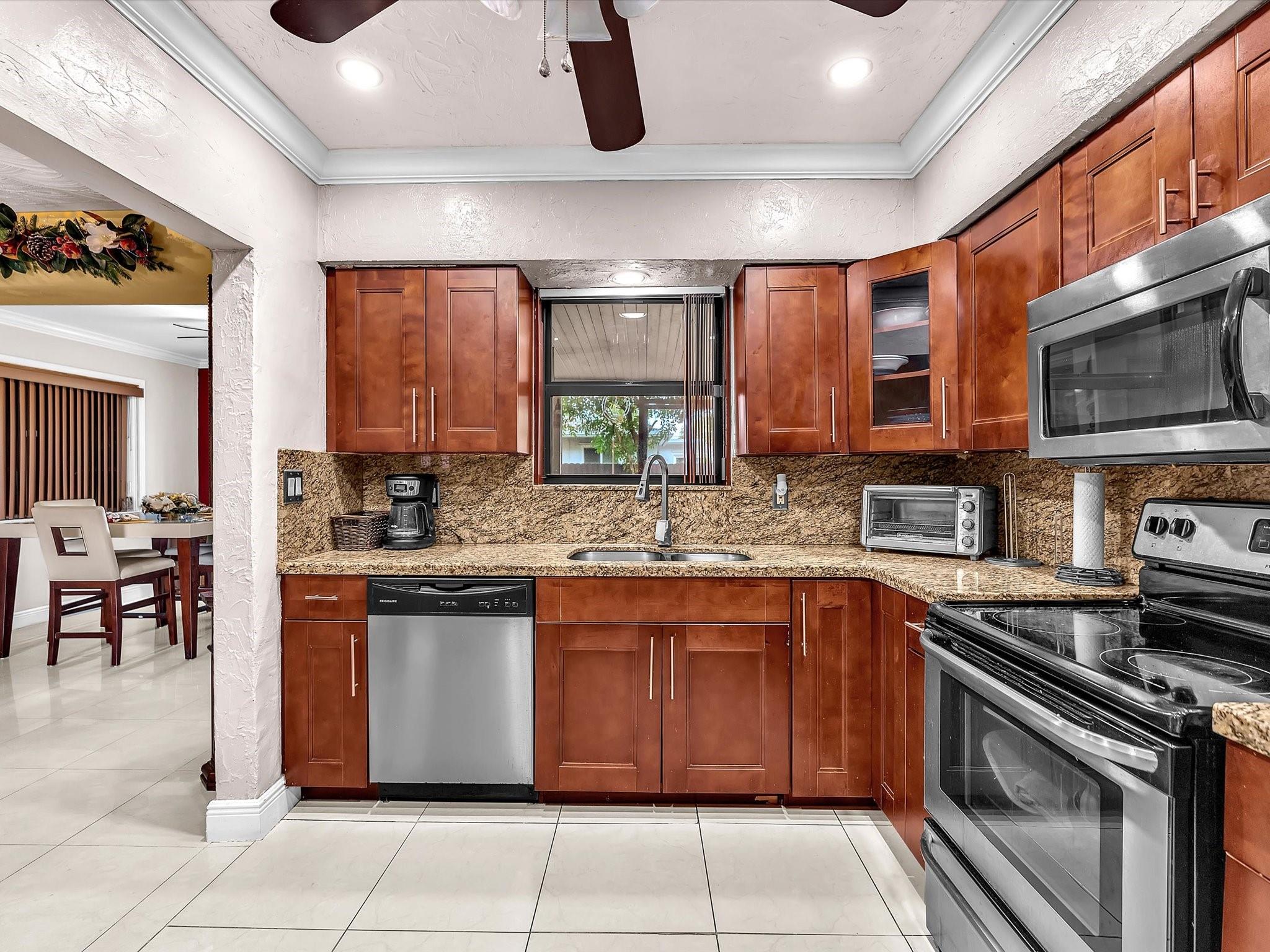 Beautiful corner home on the largest lot in the neighborhood, located in a quiet community with no HOA. Single-story layout featuring 3 bedrooms, 2 baths, comfortable living areas, and a remodeled kitchen. The screened porch opens to a spacious backyard with fruit trees, offering privacy and flexibility. Impact windows throughout, a 7-year-old roof, and a 5-year-old A/C provide peace of mind. Includes a one-car garage, additional storage, and ample parking. Conveniently located just 2 minutes from the Turnpike. Seller motivated—an excellent opportunity for first-time buyers or investors seeking passive rental income.
