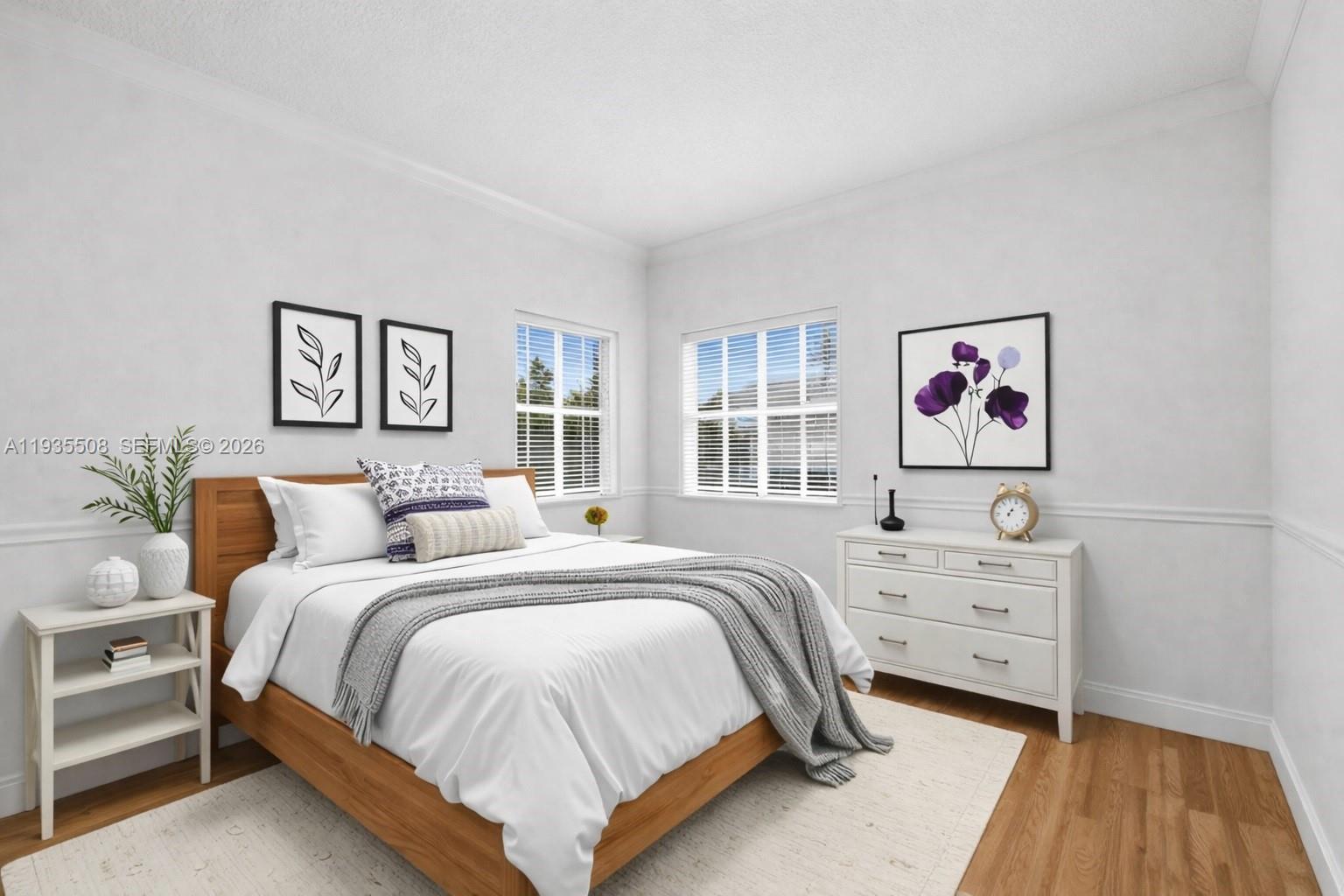 Stunning 5-bedroom, 3-bath lakefront home in desirable Monarch Lakes community of Miramar. This spacious residence features soaring vaulted ceilings and a bright, open floor plan designed for modern living and effortless entertaining. The home showcases a brand-new kitchen with quartz countertops and backsplash, top-of-the-line stainless steel appliances, abundant cabinetry, and a breakfast area that flows seamlessly into the family room. A full bedroom and bathroom on the first floor, complete with new vinyl flooring, offer ideal flexibility for guests, multigenerational living, or a private home office. The main level is finished with ceramic tile flooring, while the second floor offers elegant wood flooring throughout, highlighted by a wood-and-wrought-iron staircase. The oversized primary suite provides space for a sitting area, two walk-in closets, and a spacious ensuite bathroom with dual sinks. Additional upgrades include two A/C units replaced in 2023, a tankless water heater, and fresh interior paint. Enjoy outdoor living with a covered patio and an oversized lot offering serene garden and lake views. The home also includes a 2-car garage, access to a community pool, and a low HOA fee. Ideally located near top-rated schools, I-75, Florida’s Turnpike, shopping, dining, Memorial Hospital West, Broward College South Campus, Miramar Cultural Center & Arts Park, Pembroke Gardens, Miramar Regional Park Amphitheater, and Fort Lauderdale–Hollywood International Airport.