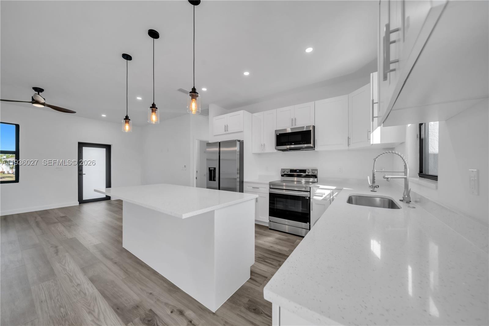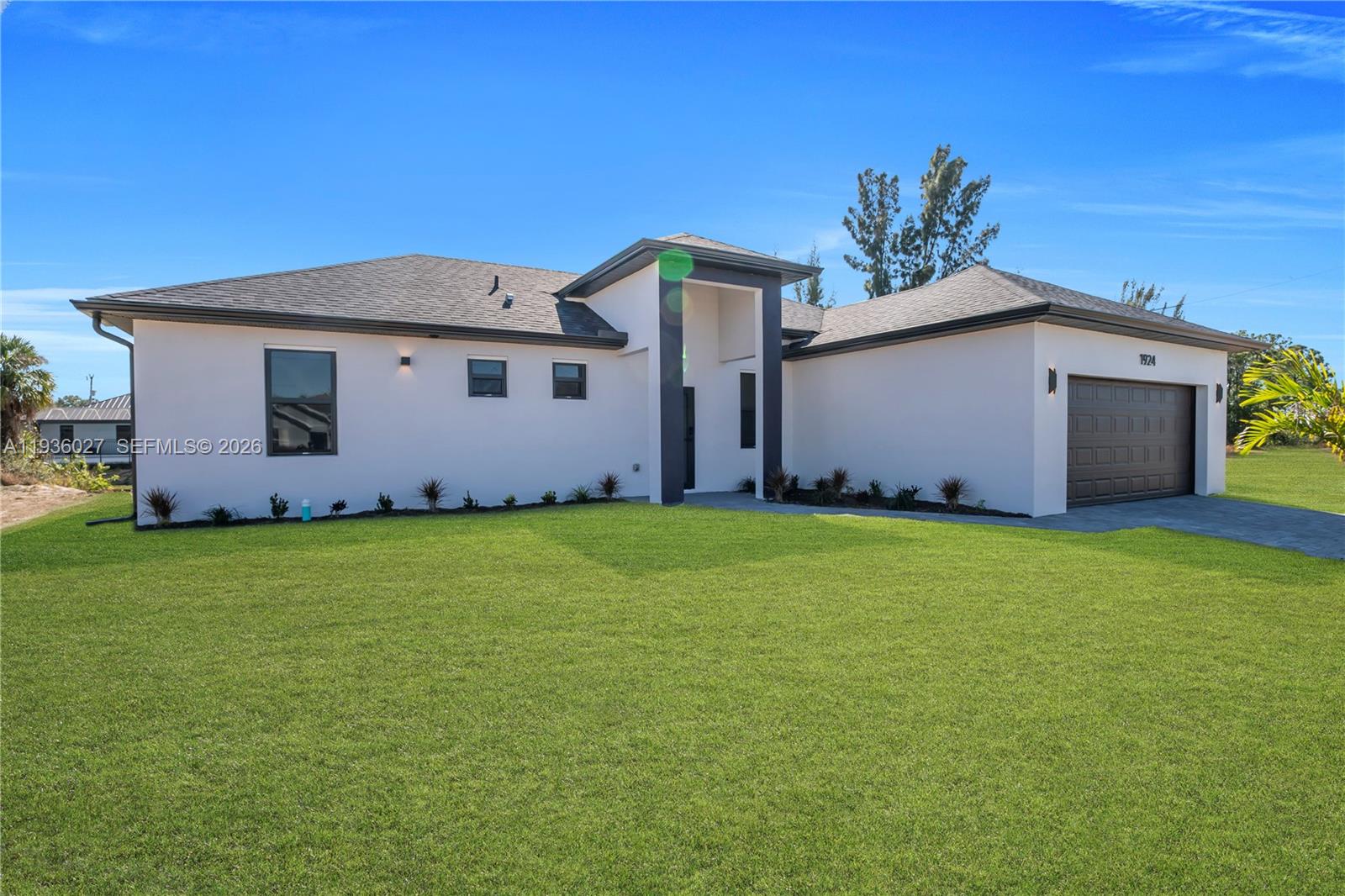 Stunning canal-front single-family home offering 3 bedrooms plus den, 2 baths, and a 2-car garage, situated in a peaceful and desirable Cape Coral location. This home showcases exceptional finishes, featuring quartz countertops in both kitchen and bathrooms, stainless steel appliances, high ceilings, and a spacious laundry room. Enjoy tranquil freshwater canal views while remaining just minutes from shopping, dining, and everyday conveniences. Ideal for full-time living or investment.