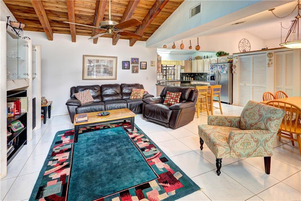 SPACIOUS & BEAUTIFUL! This exceptional home offers all the features you’ve been searching for. Enter through double doors into a bright, expansive living room with serene views of the private pool. The large dining room opens to the side yard through French doors—ideal for entertaining and gatherings. The open-concept kitchen features newer appliances and flows seamlessly into the family room, highlighted by stunning exposed wood beam ceilings. The primary suite boasts a generous walk-in closet, pool views, and a spa-like bath with dual sinks, a renovated oversized shower, and direct pool access. Accordion shutters and impact windows throughout, plus a brand-new AC and electrical panel. No HOA, tucked away in a secluded community near parks and restaurants. This one won’t last!
