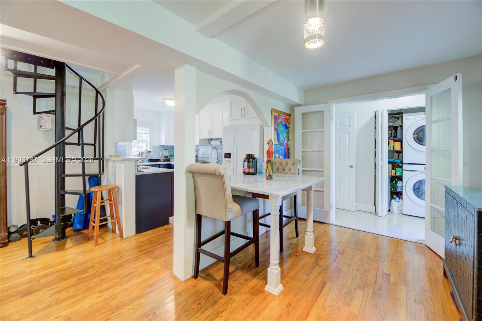 Hidden gem in the highly sought-after Tarpon River neighborhood, located on a beautiful tree-lined street just minutes from downtown Fort Lauderdale, Las Olas, dining, shopping, and nightlife. This charming residence offers 3 bedrooms and 2 full bathrooms, plus a versatile loft and a detached garage/workshop with private alley access. The spacious primary suite features high ceilings and an ensuite bathroom with dual vanities and an oversized walk-in shower. The home features central air conditioning, a new kitchen, completely updated bathrooms, new washer/dryer, quartz countertops in the kitchen, and custom closets throughout. The loft provides flexible space ideal for a home office, playroom, or additional sleeping area with a second A/C split. A separate mother-in-law quarters offers excellent guest or flexible-use potential—approximately 2,100 square feet under air with original Dade County pine wood floors. Additional features include a new metal roof, hurricane-impact windows, three large enclosed backyard storage areas, and a dedicated A/C storage shed. Parking includes two front spaces plus a backyard driveway space, with ample guest parking nearby. Walking distance to The Wharf, Broward Center, parks, restaurants, & Publix. Protective awnings throughout, custom stonescaping front and back, window treatments, exterior motion lighting, lush palms, new fencing with 20’ rolling gate, steps to downtown bars, tennis & pickleball. A rare opportunity to own in Tarpon River.
