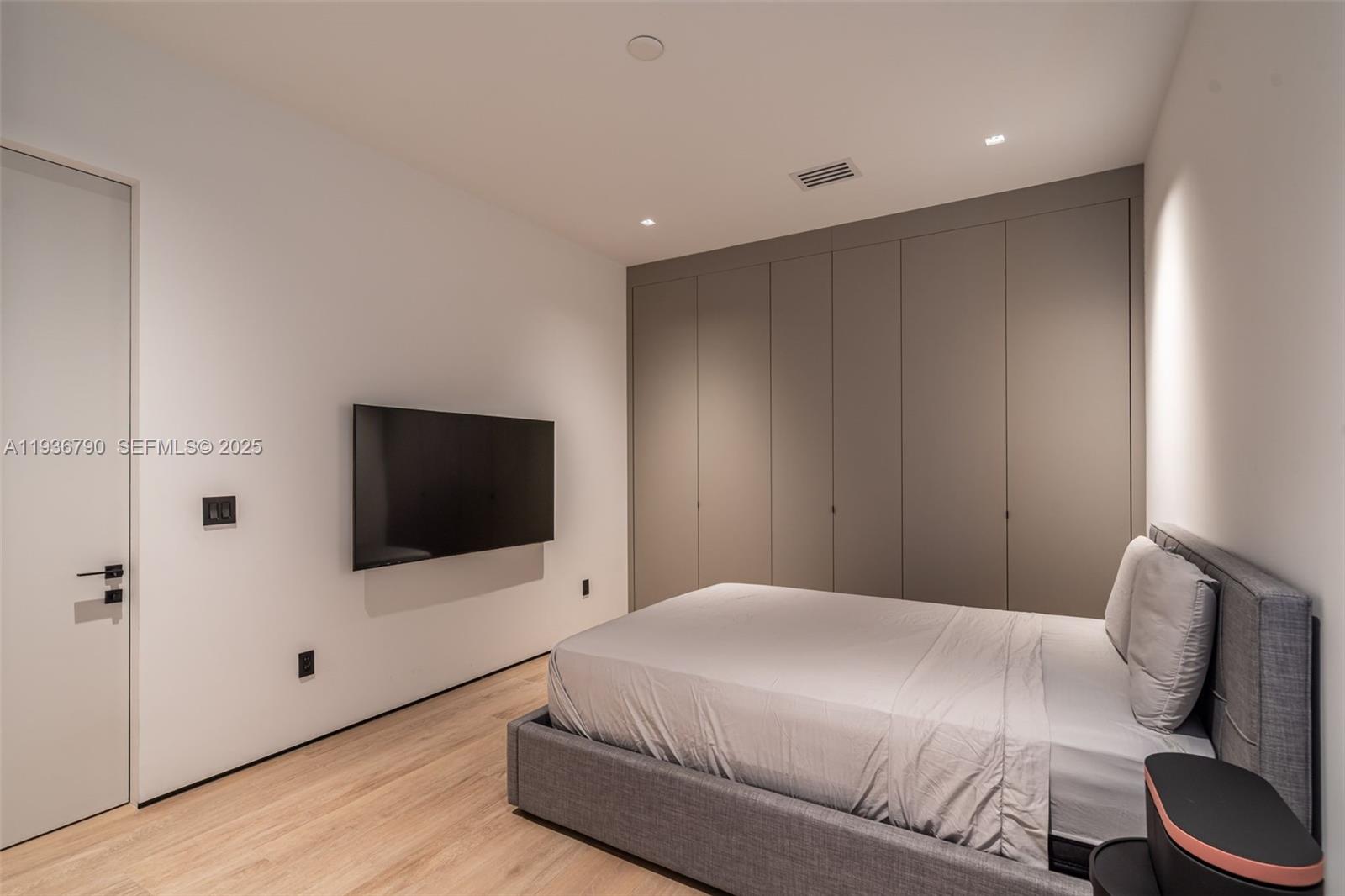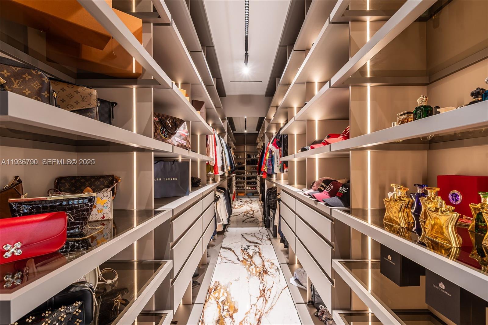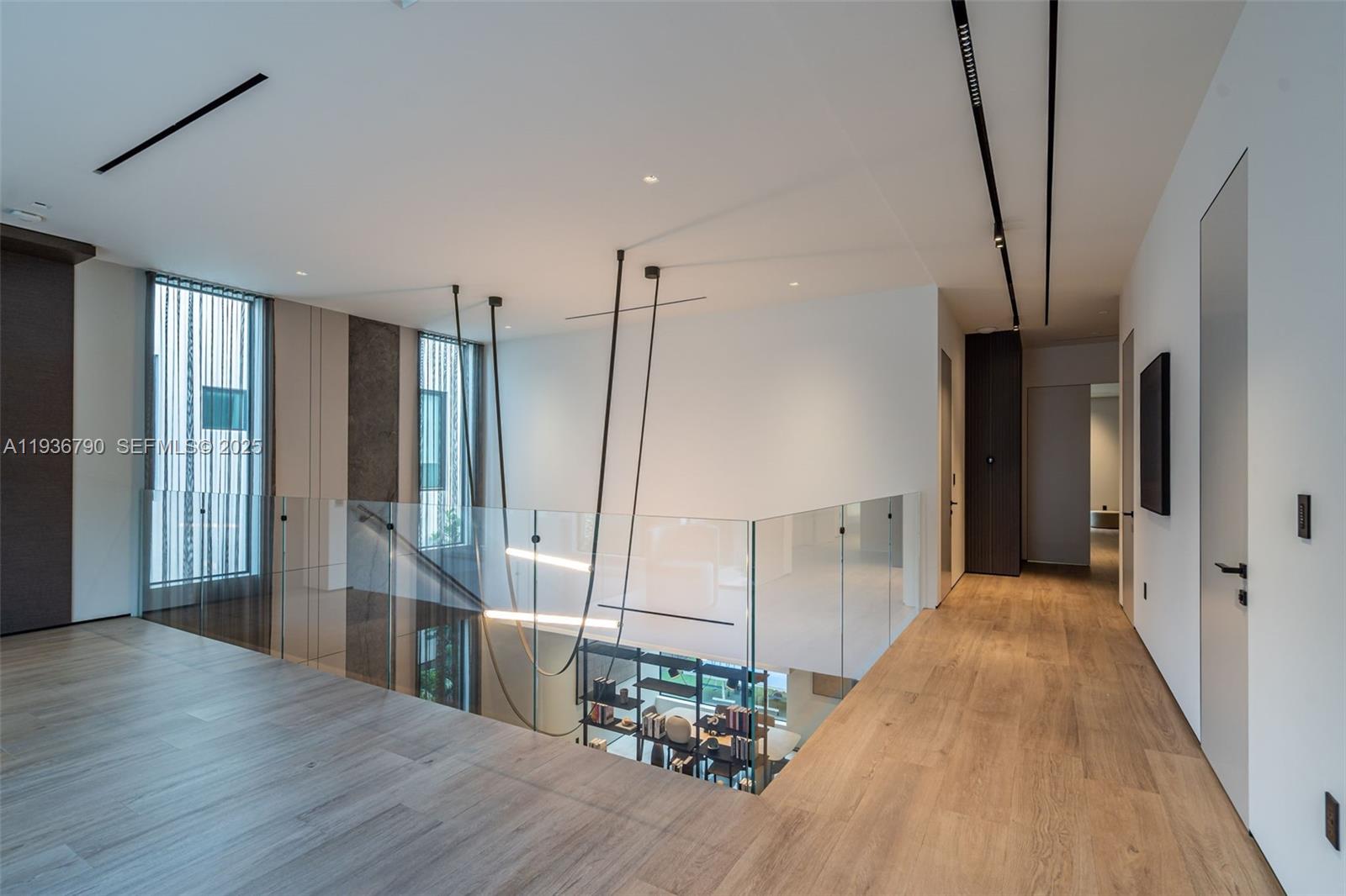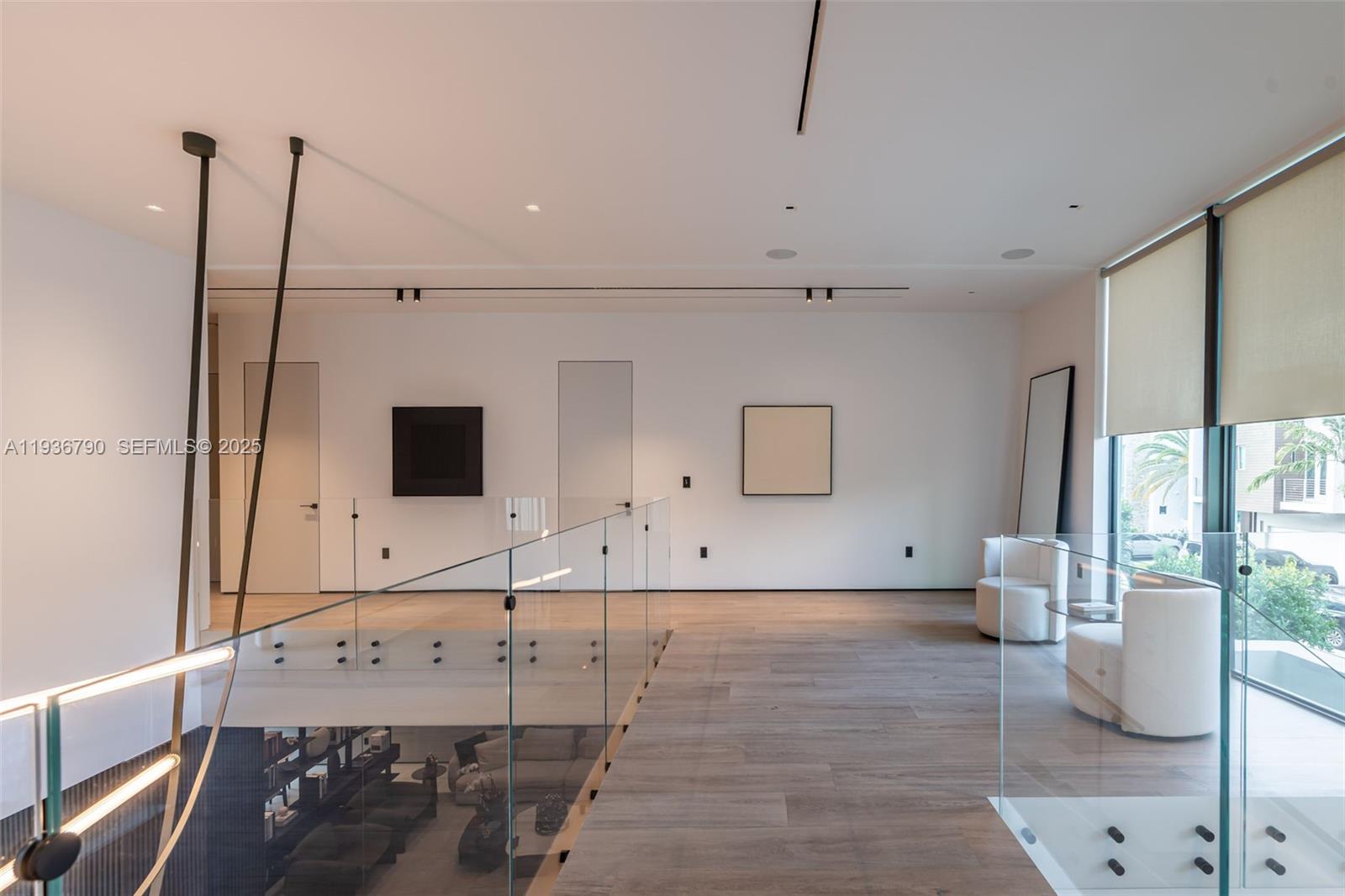 This minimalist contemporary luxury home is a masterfully designed residence curated with uncompromising attention to detail, delivering a true high-end living experience. The home features a full WAC architectural track lighting system throughout, complemented by recessed linear LEDs, ambient cove lighting, and a dramatic Flos AIM statement fixture accentuating the double-height living space. A fully integrated Smart Home system with Lutron and Control4 allows seamless control of lighting, climate, and ambiance, while a whole-home speaker system provides integrated audio throughout. Interiors are Artefacto-furnished, showcasing sculptural contemporary pieces and anchored by a striking Lexington central shelving unit by Poliform, conceived as a gallery-style architectural focal point. The residence is finished with large-format marble-design flooring and flawless Level 5 smooth wall finishes, reflecting a museum-quality execution. Custom sheer and blackout drapery systems provide refined light control and privacy throughout. The Italian Poliform kitchen is a true showpiece, featuring sleek European cabinetry, premium integrated appliances, and an oversized full-slab waterfall island—ideal for both entertaining and everyday luxury living. The primary suite offers a boutique-style custom walk-in closet with illuminated shelving. A finished garage adds versatility as a lounge, studio, or private gym. Every element of this home reflects a refined, luxury standard.