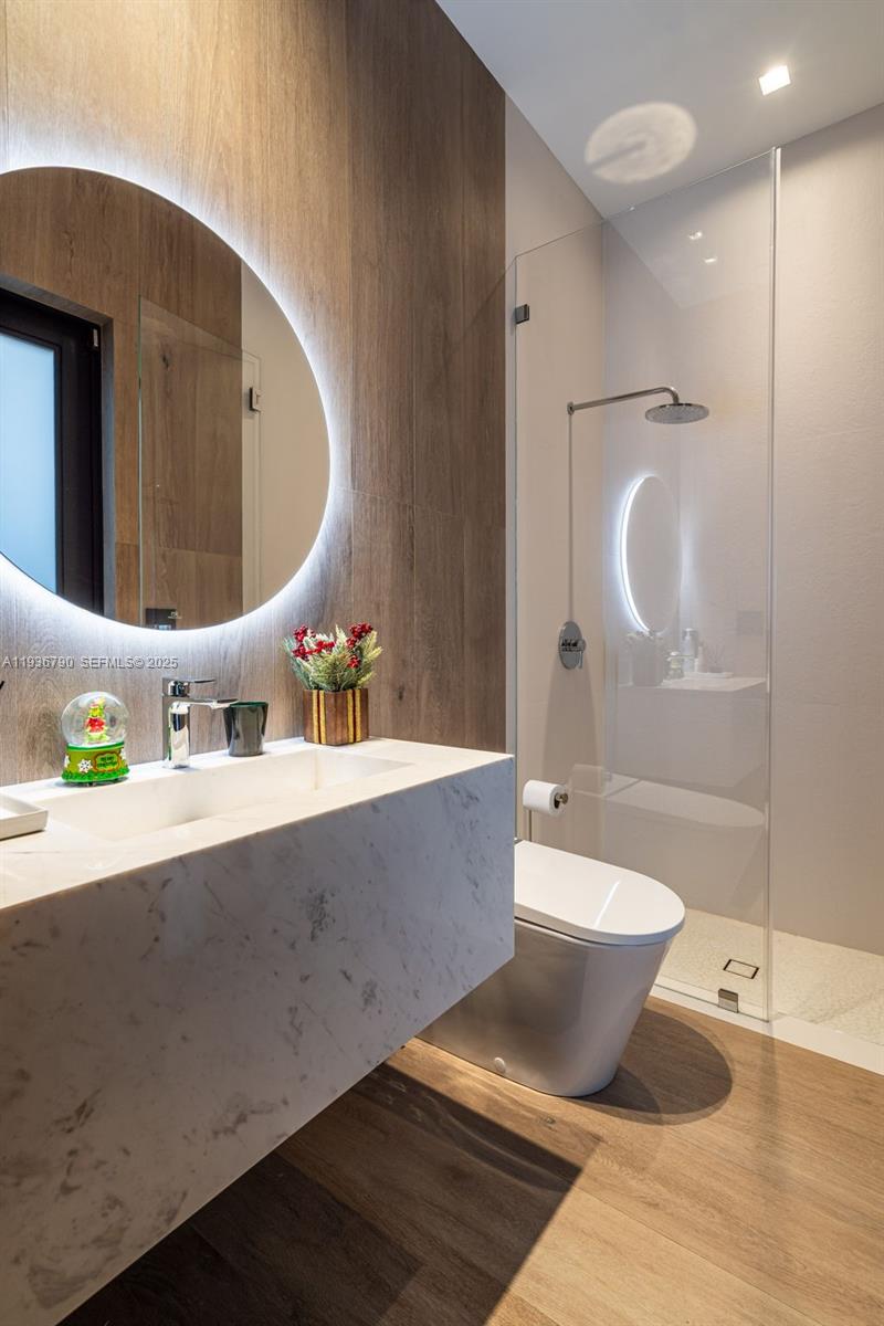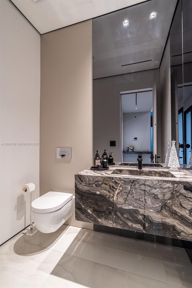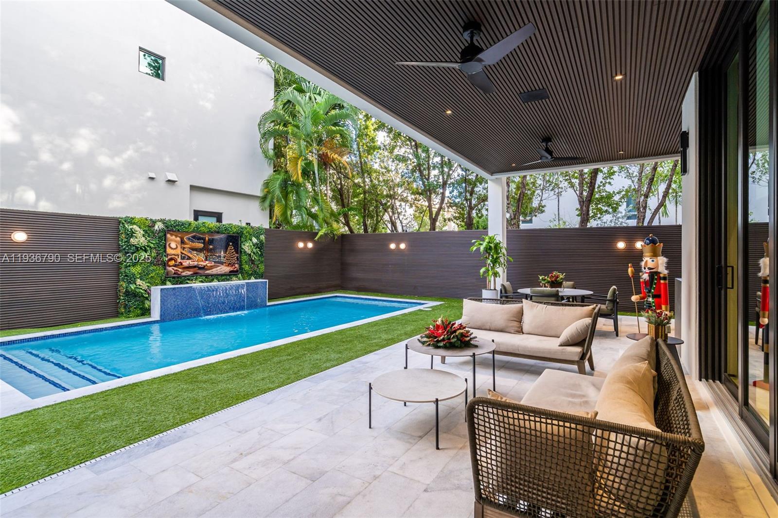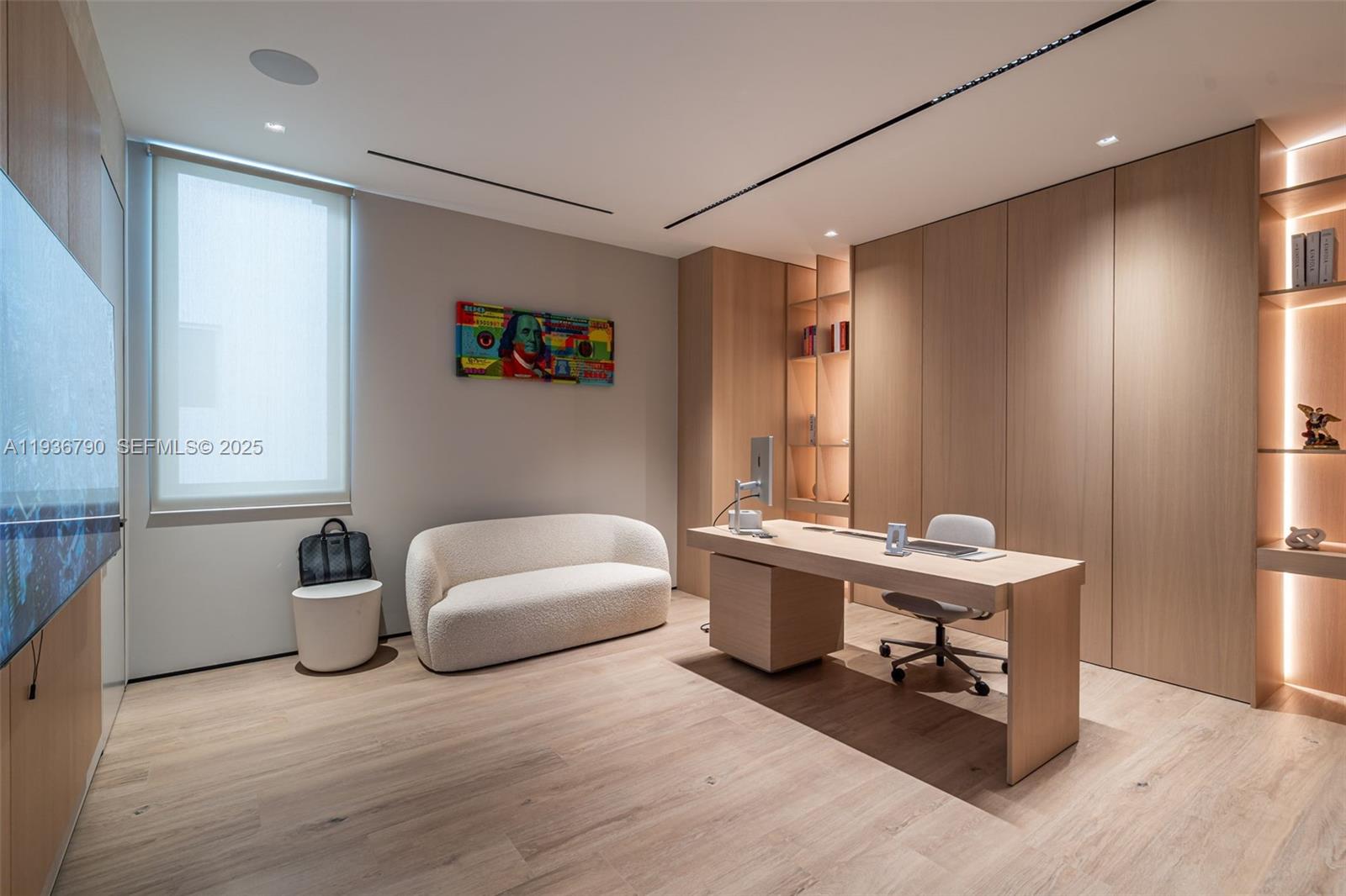 This minimalist contemporary luxury home is a masterfully designed residence curated with uncompromising attention to detail, delivering a true high-end living experience. The home features a full WAC architectural track lighting system throughout, complemented by recessed linear LEDs, ambient cove lighting, and a dramatic Flos AIM statement fixture accentuating the double-height living space. A fully integrated Smart Home system with Lutron and Control4 allows seamless control of lighting, climate, and ambiance, while a whole-home speaker system provides integrated audio throughout. Interiors are Artefacto-furnished, showcasing sculptural contemporary pieces and anchored by a striking Lexington central shelving unit by Poliform, conceived as a gallery-style architectural focal point. The residence is finished with large-format marble-design flooring and flawless Level 5 smooth wall finishes, reflecting a museum-quality execution. Custom sheer and blackout drapery systems provide refined light control and privacy throughout. The Italian Poliform kitchen is a true showpiece, featuring sleek European cabinetry, premium integrated appliances, and an oversized full-slab waterfall island—ideal for both entertaining and everyday luxury living. The primary suite offers a boutique-style custom walk-in closet with illuminated shelving. A finished garage adds versatility as a lounge, studio, or private gym. Every element of this home reflects a refined, luxury standard.