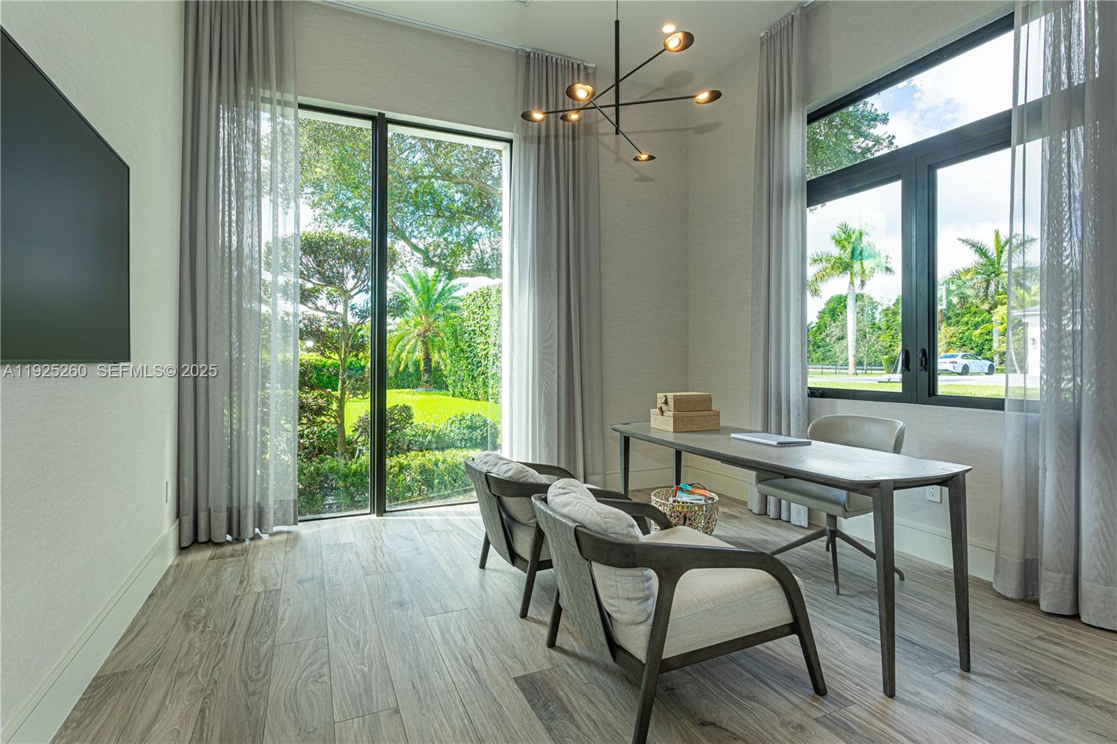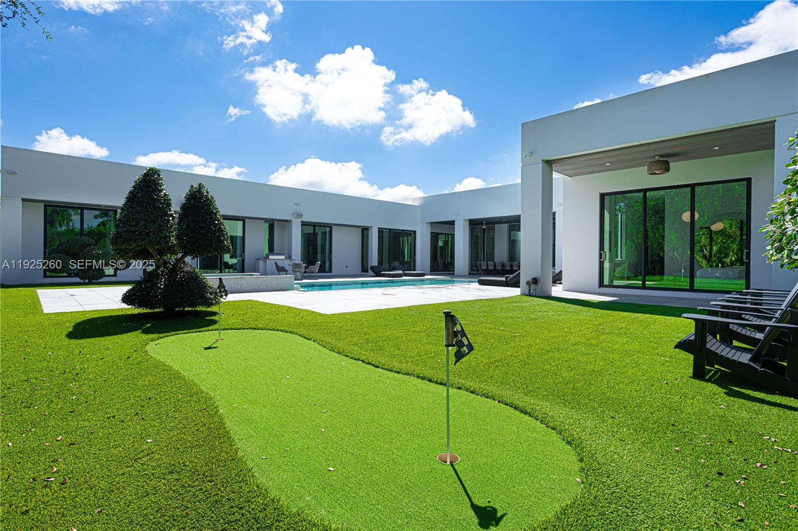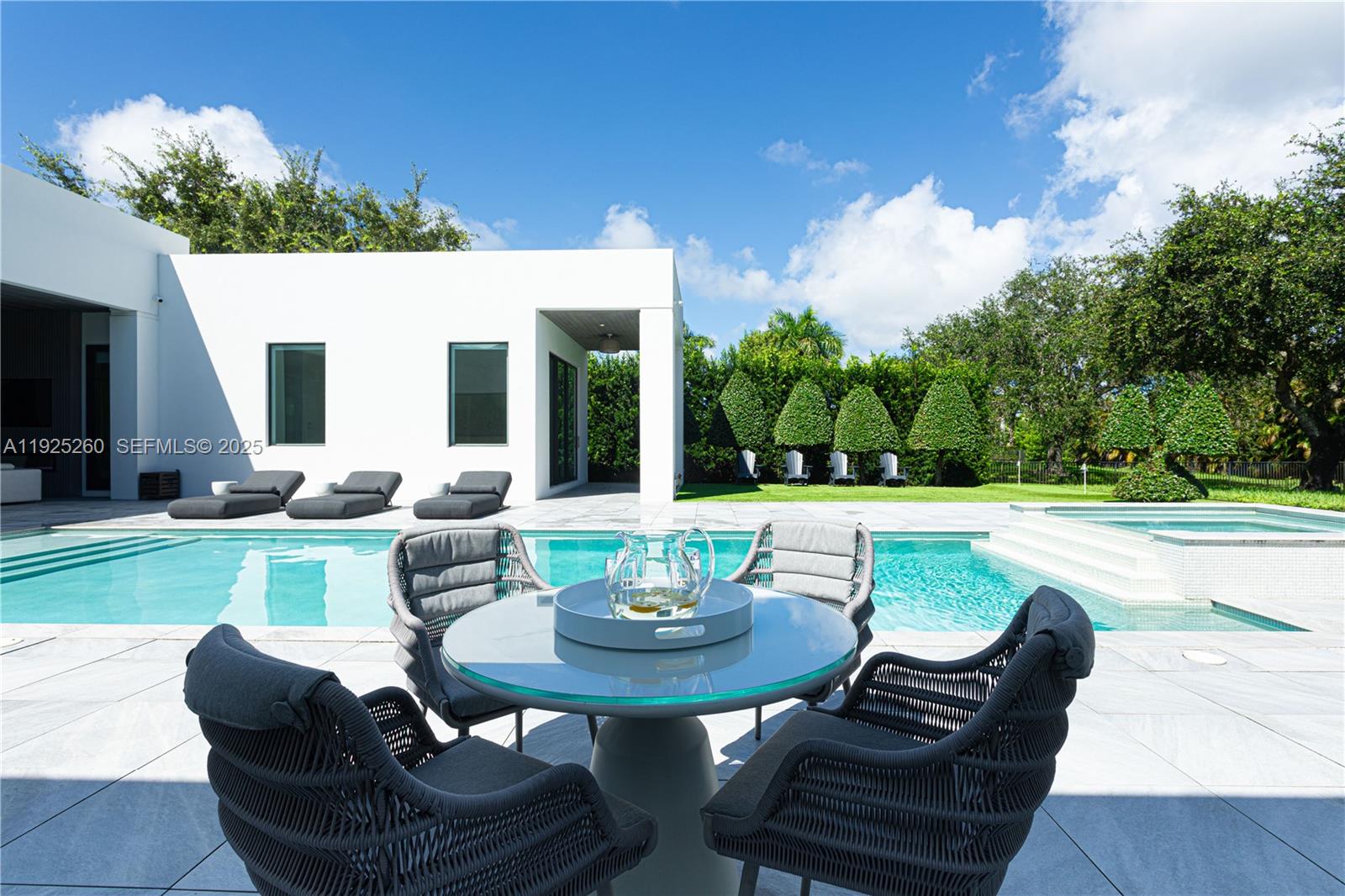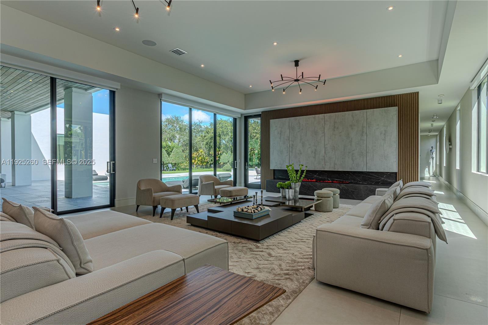 Luxury modern living awaits in this stunning 5 bedroom, 6 bathroom contemporary estate located in The Reserve an exclusive, gated enclave consisting of only 8 custom homes in the prestigious Southwest Ranches community. Set on a full 1-acre lot, this 5,532 sq ft single-story residence boasts clean architectural lines, expansive impact glass windows, and beautifully sculpted landscaping that delivers unmatched curb appeal. Inside, the open-concept design features soaring ceilings, abundant natural light, and premium finishes throughout. Office space provides flexibility for work or study. The chef-inspired kitchen is equipped with top-of-the-line Wolf appliances and Sub-Zero refrigeration, ideal for entertaining and culinary excellence. Each bedroom is a private suite with its own luxuriously designed bathroom, offering maximum comfort and style. Perfecting indoor-outdoor living, floor-to-ceiling glass doors lead to a resort-style backyard oasis with a sparkling pool, expansive patio, and lush privacy. A built-in Sonos audio system enhances entertainment, while Control4 smart-home technology, security cameras, and electric blinds throughout the home provide seamless convenience. The high-end 4-car garage includes upgraded flooring and custom cabinet storage This beautiful property is also available fully furnished, ready for immediate move-in, with a negotiable price.