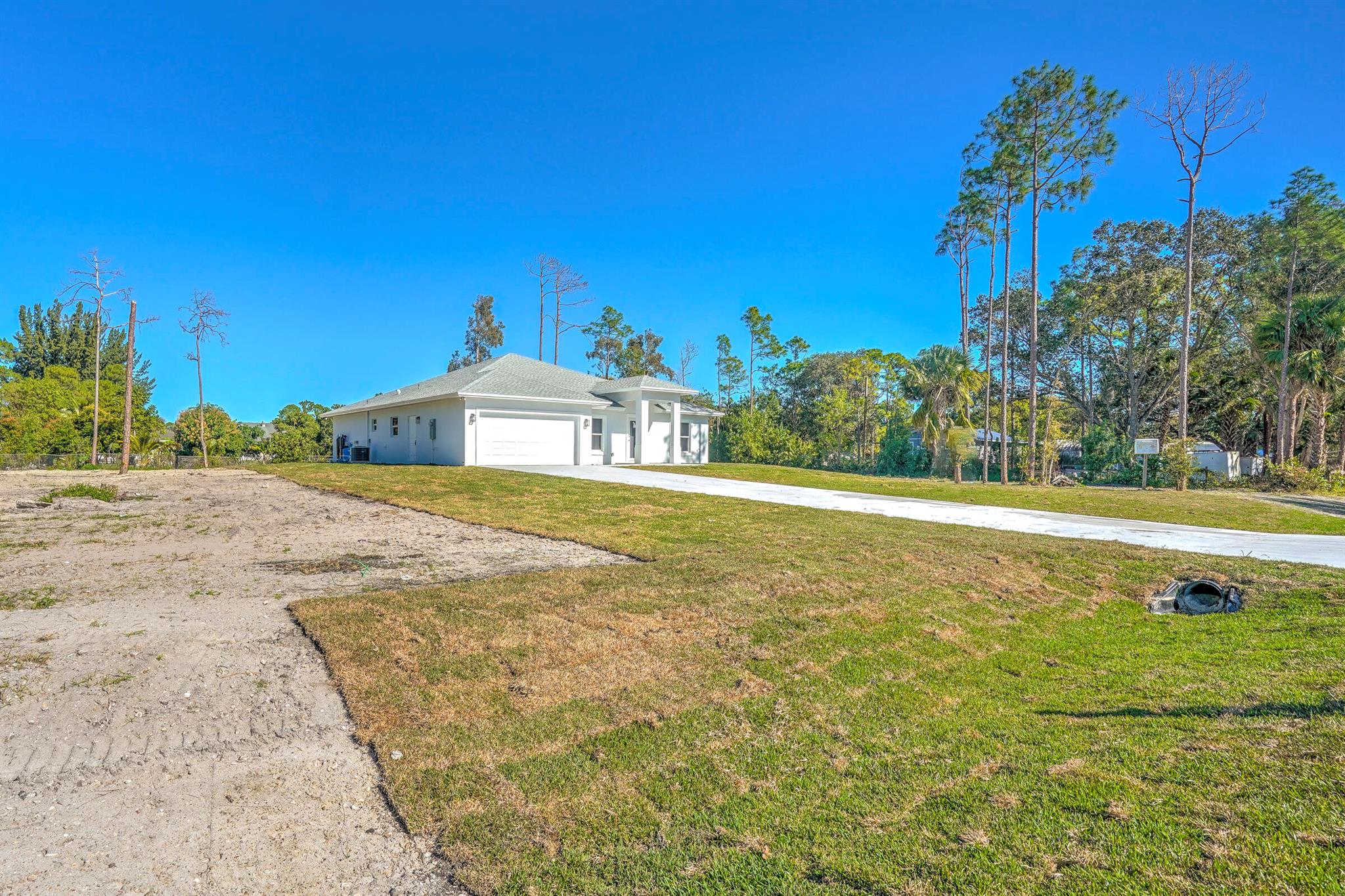 Stunning new construction in Loxahatchee offering 3,136 total square feet with 4 spacious bedrooms, 3 full bathrooms, and a two-car garage. Built with durable CBS concrete block construction, this modern home provides peace of mind with impact windows and doors throughout. A complete water filtration system is already installed for added convenience. Situated on a paved road, the property also features a paved driveway and a covered patio, perfect for outdoor relaxation and entertaining. Enjoy ample green space while being surrounded by the natural beauty and charm of Loxahatchee.