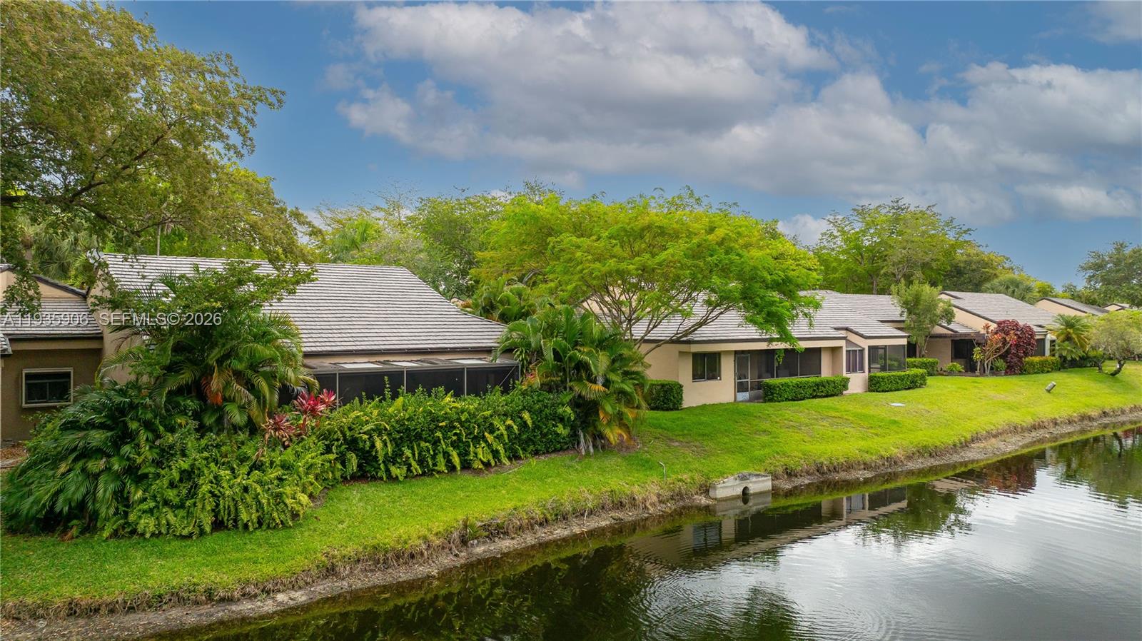LOCATION, LOCATION, LOCATION! Welcome to this well-maintained corner villa in the highly desirable Chelsea I community, perfectly situated beneath mature Jacaranda trees with peaceful lakefront views. This spacious 3-bedroom, 2-bath home offers vaulted ceilings and a bright, open layout that feels both comfortable and inviting. The updated kitchen features stainless steel appliances, while the dining area and screened patio overlook tranquil water views—ideal for everyday living or quiet relaxation. The primary suite includes a walk-in closet, complemented by a large laundry room and three dedicated parking spaces. Additional highlights include hurricane panels and a roof replaced approximately six years ago, providing peace of mind. The HOA covers roof and exterior maintenance, landscaping, and insurance, making this an excellent option for low-maintenance living. Community amenities include a pool, spa, and clubhouse. Also included: brand-new vinyl flooring is included and ready for installation, offering buyers the opportunity to personalize the space. Conveniently located just steps from Central Park, shopping, dining, and top-rated schools, this home is priced to sell and ready for its next owner.