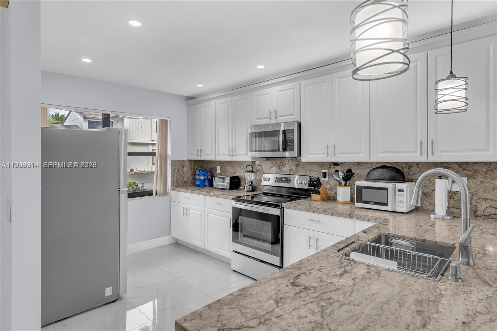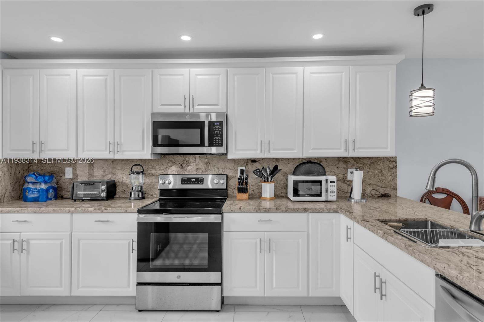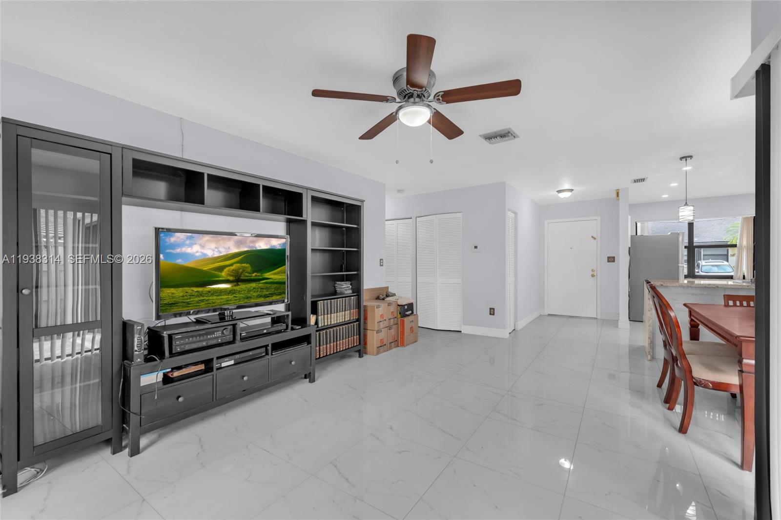 Welcome to this 2/2 Gem! This property offers a functional floor plan with comfortable living spaces, ideal for both everyday living and entertaining. Natural light flows throughout the home, creating a warm and inviting atmosphere. The recently updated kitchen provides ample cabinetry and counter space, opening to the main living and dining areas for easy flow. Bedrooms are generously sized, offering comfort and flexibility for family, guests, or a home office. The primary bedroom includes ample closet space and privacy from the main living areas. Step outside to your backyard, perfect for outdoor gatherings, gardening, or future customization. Conveniently located near major highways, shopping centers, dining, schools, and parks, this home provides both comfort and accessibility. LOW HOA. Ideal for homeowners or investors seeking a property in a strong, central location. Easy to show. Schedule your private tour today. NEW ROOF 2023, NEW APPLIANCES 2024, HURRICANE SHUTTERS. WASHER AND DRYER IN THE UNIT.