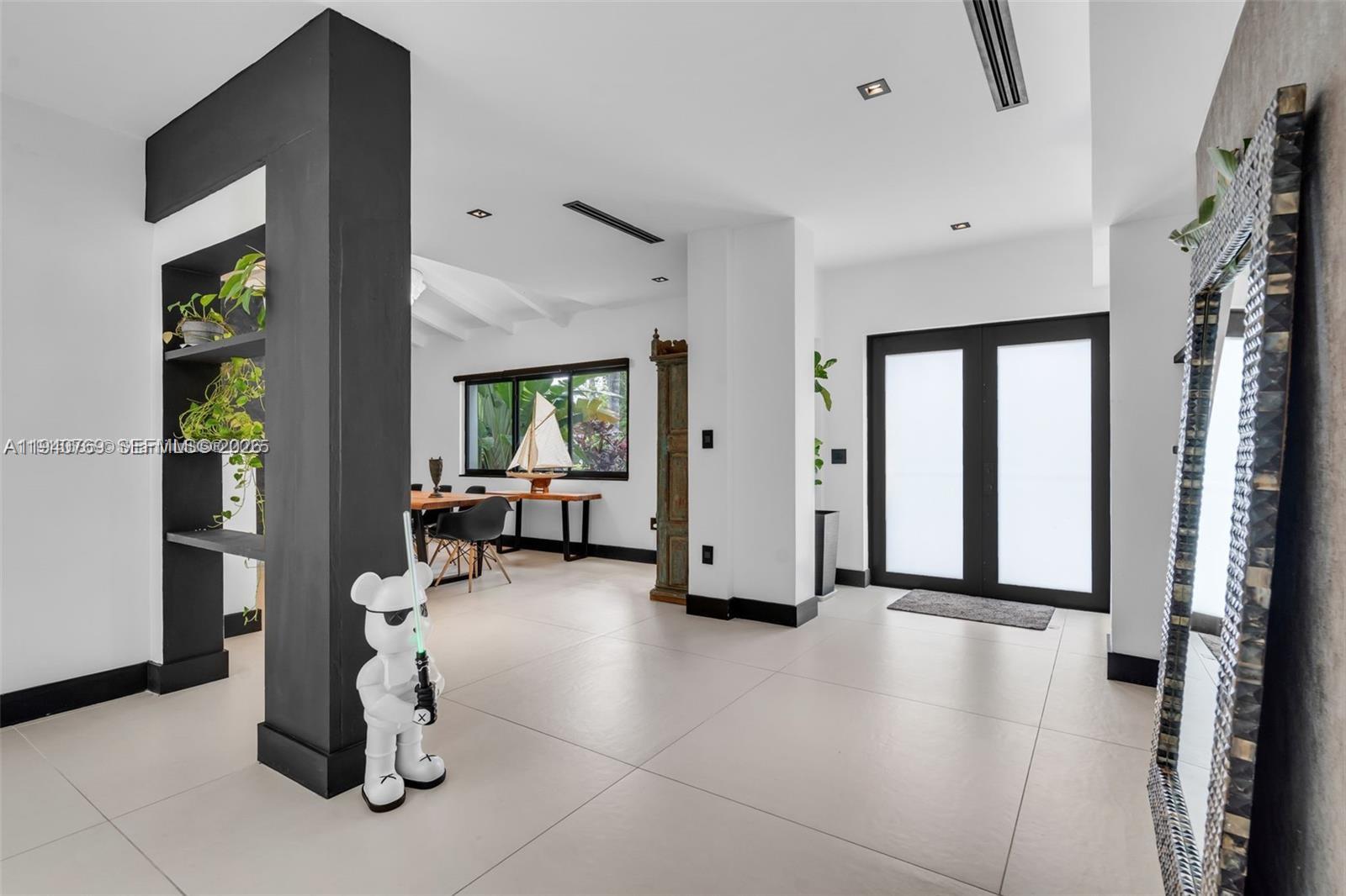 Stunning modern oasis in Miami Shores, fully renovated in 2025. This light-filled home features clean contemporary lines, cathedral ceilings, Versace accent tiles, Italian ceramic bathrooms, ceramic flooring, Gaggenau appliances, Italian quartz countertops, and hurricane-impact windows/doors. Major upgrades include a 2024 metal roof, new AC, dual water heaters, and a skylight. Four parking spaces. Enjoy a zen garden, 1,100+ SF of covered decking, and a 45-ft heated lap pool. Oversized double lot, minutes to Miami Beach, Bal Harbour, and the Design District. Top schools nearby. Exclusions: Dining room chandelier, all freestanding mirrors, artwork, and furniture. Seller reserves the right to remove or replace certain decorative items prior to closing. OPEN HOUSE SATURDAY 1-3PM