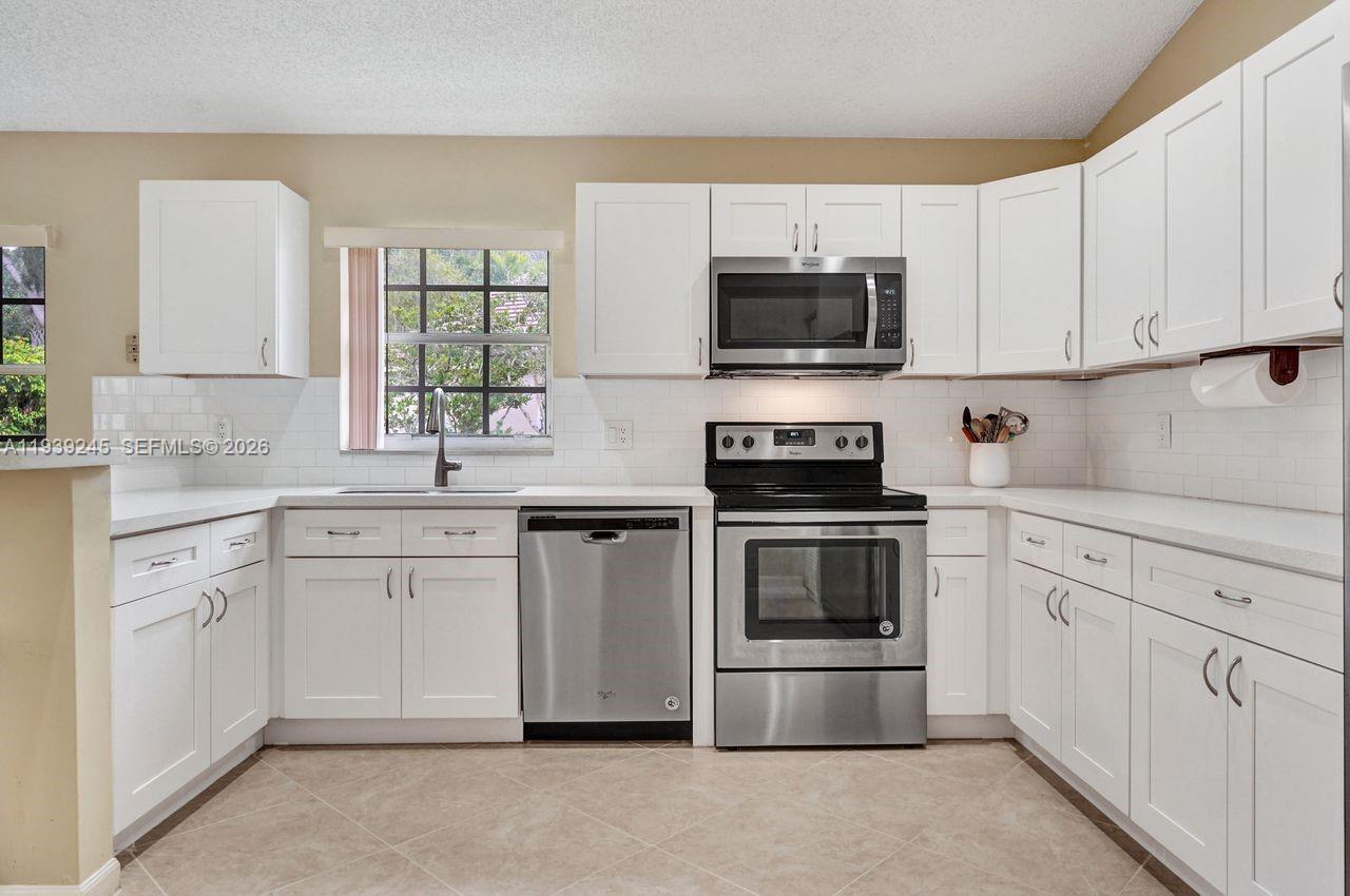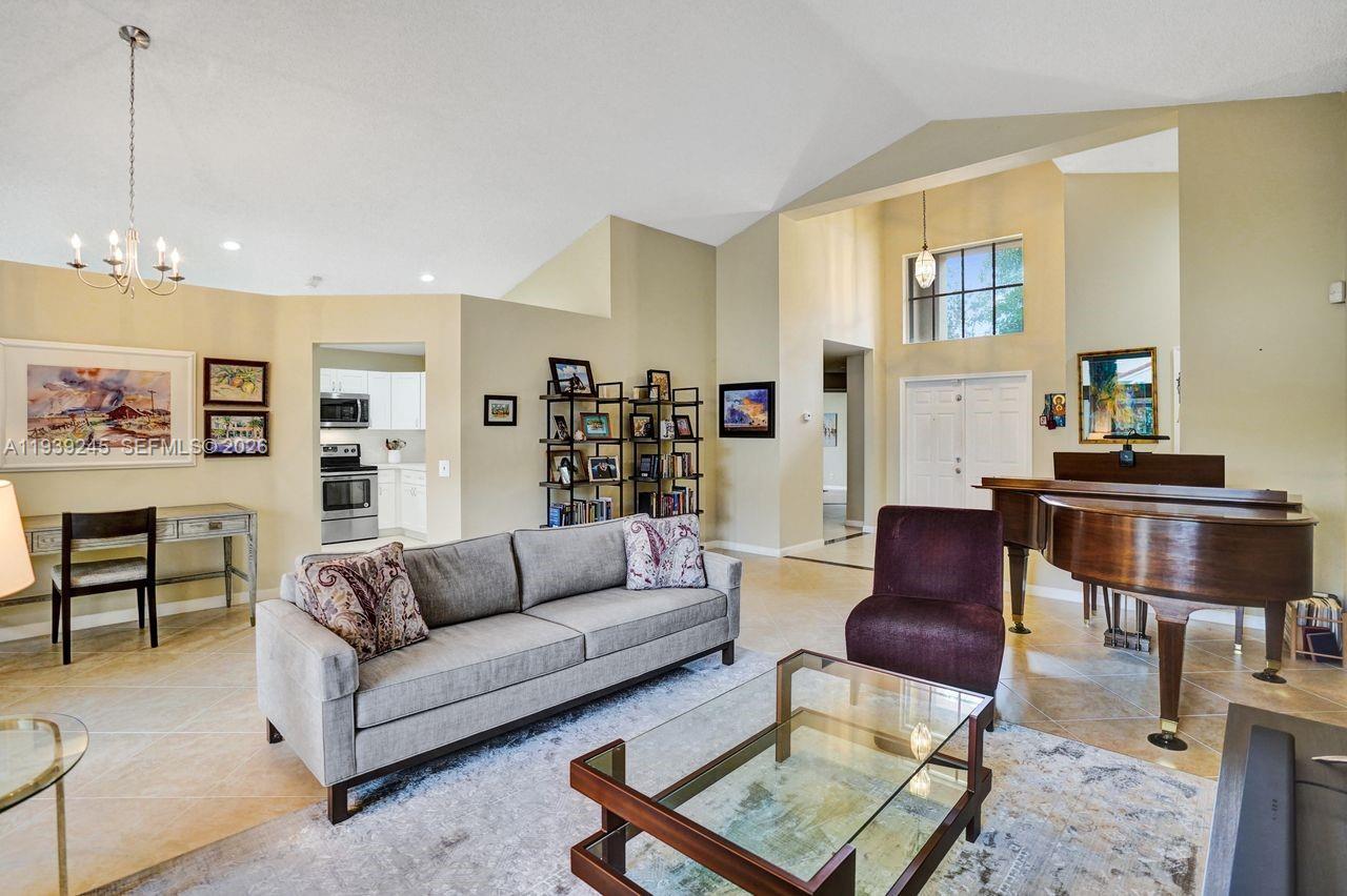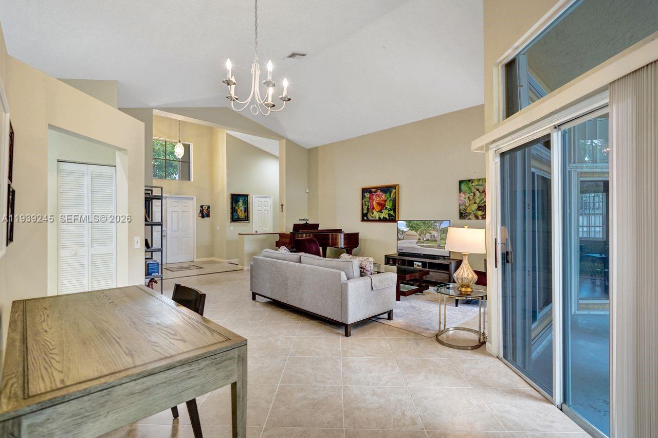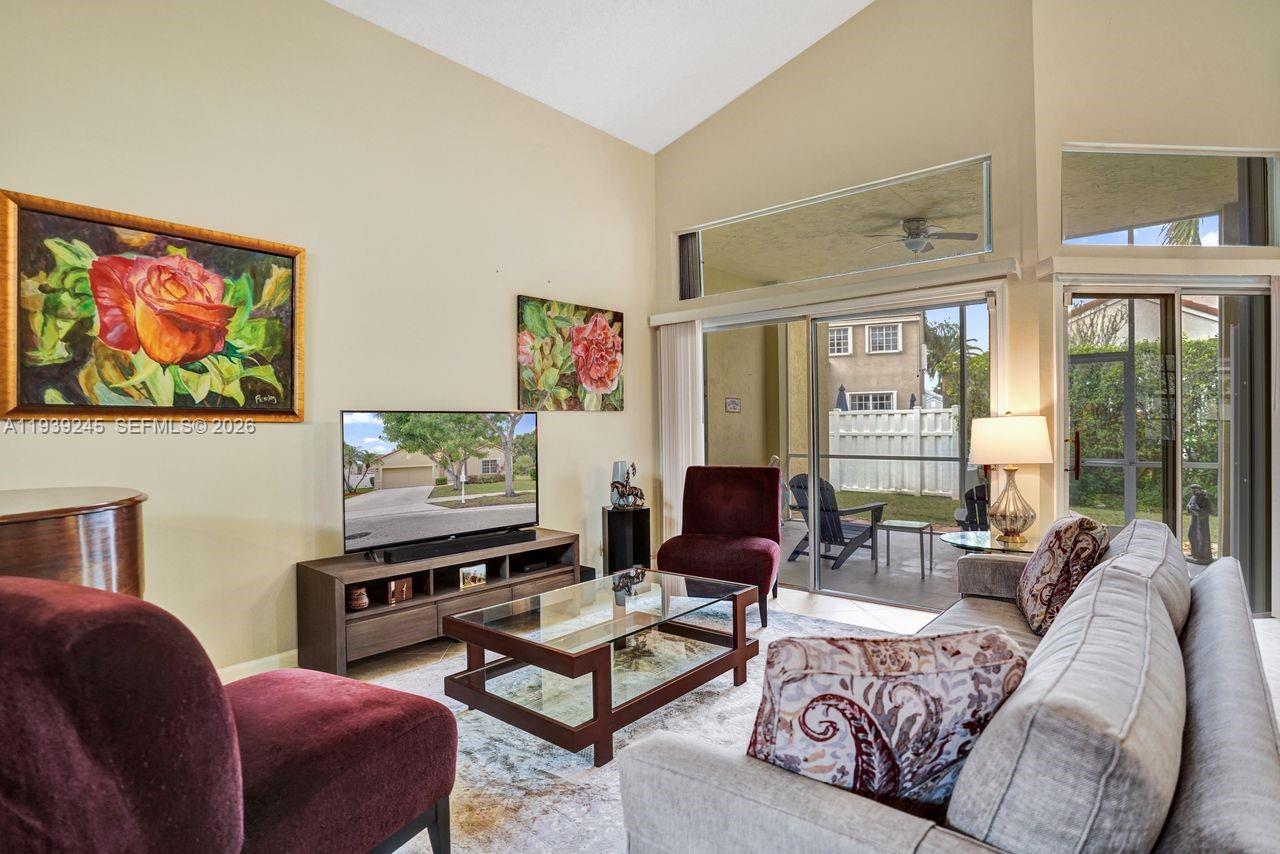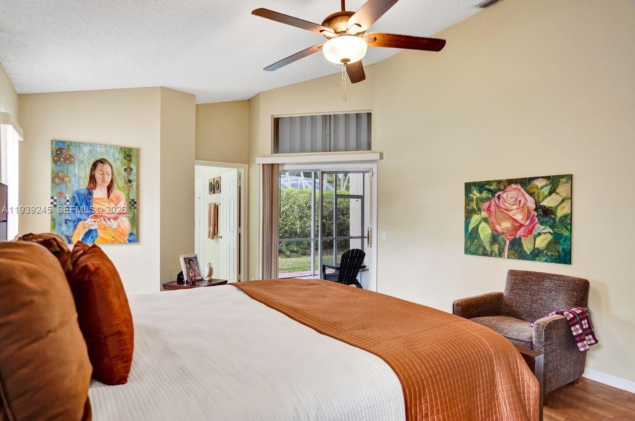 Gorgeous light and bright one story home in The Falls that makes you feel welcome with high cathedral ceilings. Home has 4 bedrooms and 2.5 baths with a nice open floor plan. Very nice kitchen with stainless steel appliances, white cabinets and light countertops. Neutral tile flooring in main areas and wood flooring in bedrooms. Private screened in patio to enjoy and relax.new roof and r-30 insulation. Accordion hurricane shutters.