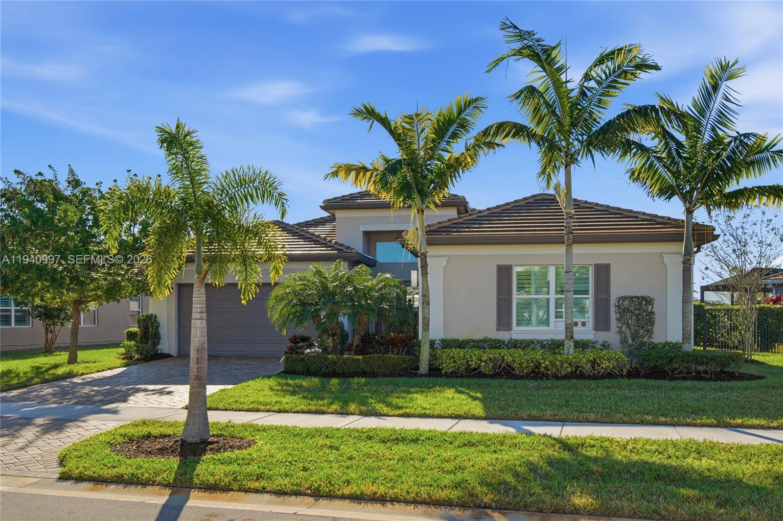 Welcome to 11698 SW Coronado Springs Drive! This meticulously maintained residence is located in Valencia Cay at Riverland, one of Port St. Lucie's most desirable 55+ communities. This exceptional home is a Vintage and Crown collection and is located on an oversized prime lot, offering a rare southern exposure. It is one of Riverland's only long-lake, southern-view pool homes and delivers breathtaking sunrise-to-sunset water views and an unparalleled living experience. Set on an oversized pie-shaped lot with rare additional yard space on both sides, this home is designed for the ultimate Florida lifestyle. The private backyard is a true entertainer's retreat, featuring a heated and chilled saltwater pool, hurricane-rated roll down screen enclosure, an oversized outdoor kitchen space and a cozy fire pit. Inside, the bright open-concept layout is ideal for both everyday living and entertaining. The chef's kitchen is appointed with level five cabinetry and premium finishes. Smart home features allow seamless control of the pool, outdoor screens, and window treatments. A versatile den can function as a third bedroom, while the 1-car garage has been converted into a gym, hardwired for air conditioning. The spacious primary suite serves as a peaceful retreat with beautiful long-lake views and a gorgeous oversized primary bathroom and two spacious walk-in closets. Natural light fills the living spaces, creating a warm and inviting atmosphere throughout the home.