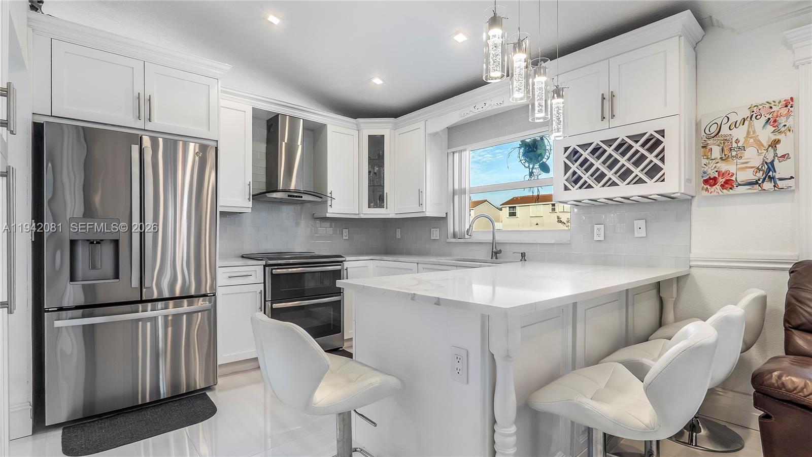 Beautifully updated 3-bedroom, 2-bathroom home featuring tile flooring throughout and a bright, modern design. The kitchen offers white cabinetry with soft-close doors, white countertops, and a dishwasher replaced just one year ago. Both bathrooms are updated with white vanities and countertops for a fresh, timeless look. Enjoy the convenience of a whole-house music control system, central vacuum, and a one-car garage. The home features impact windows plus accordion shutters, a new tile roof, water heater (2022), and two A/C units (10-gallon, approx. 10 years old). Relax with a peaceful water canal view and benefit from guest parking within a safe, well-maintained community. Ideally located near main roads for easy access and situated in a highly desirable school district. A move-in-ready home that perfectly blends comfort, upgrades, and location.