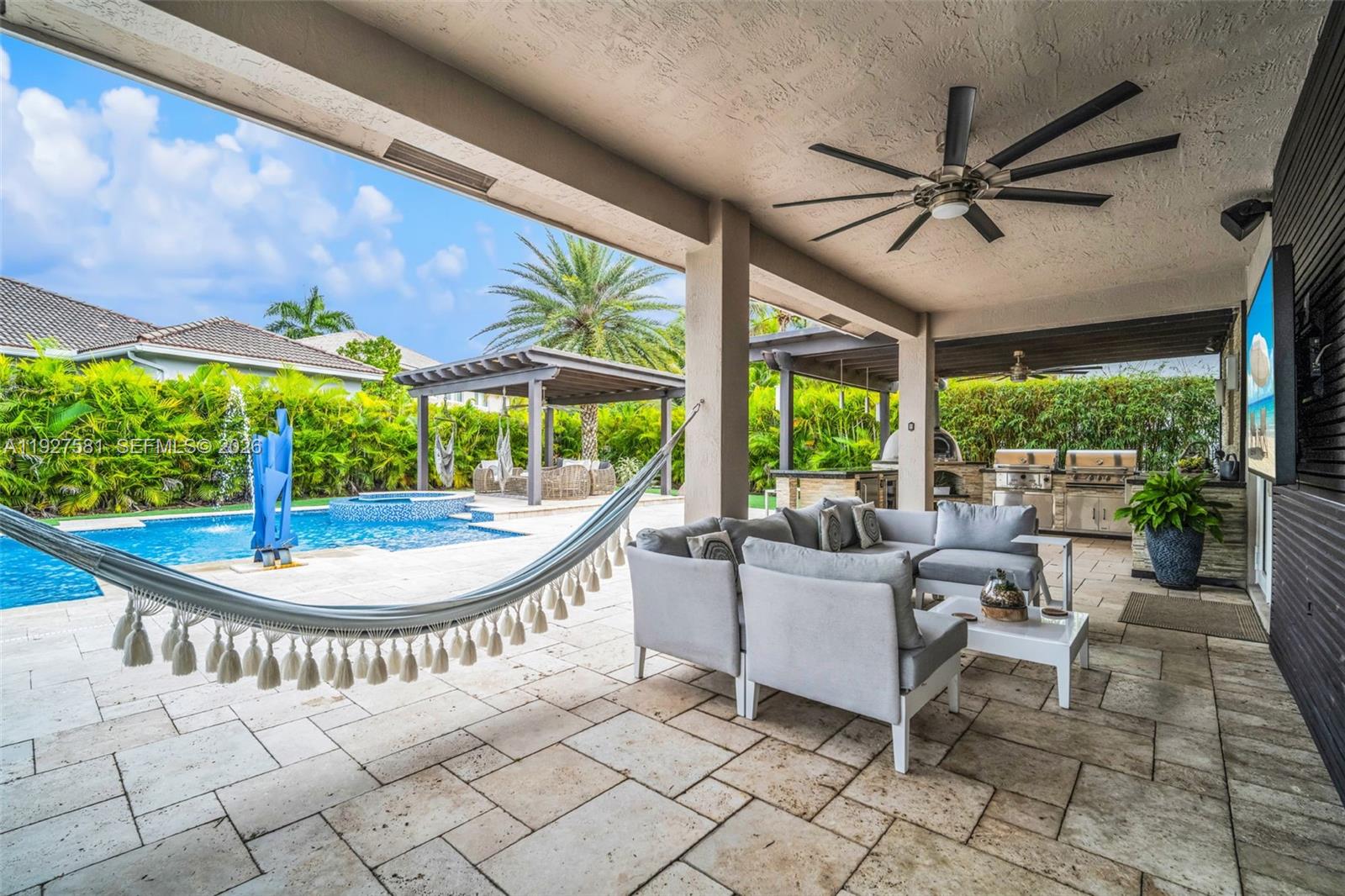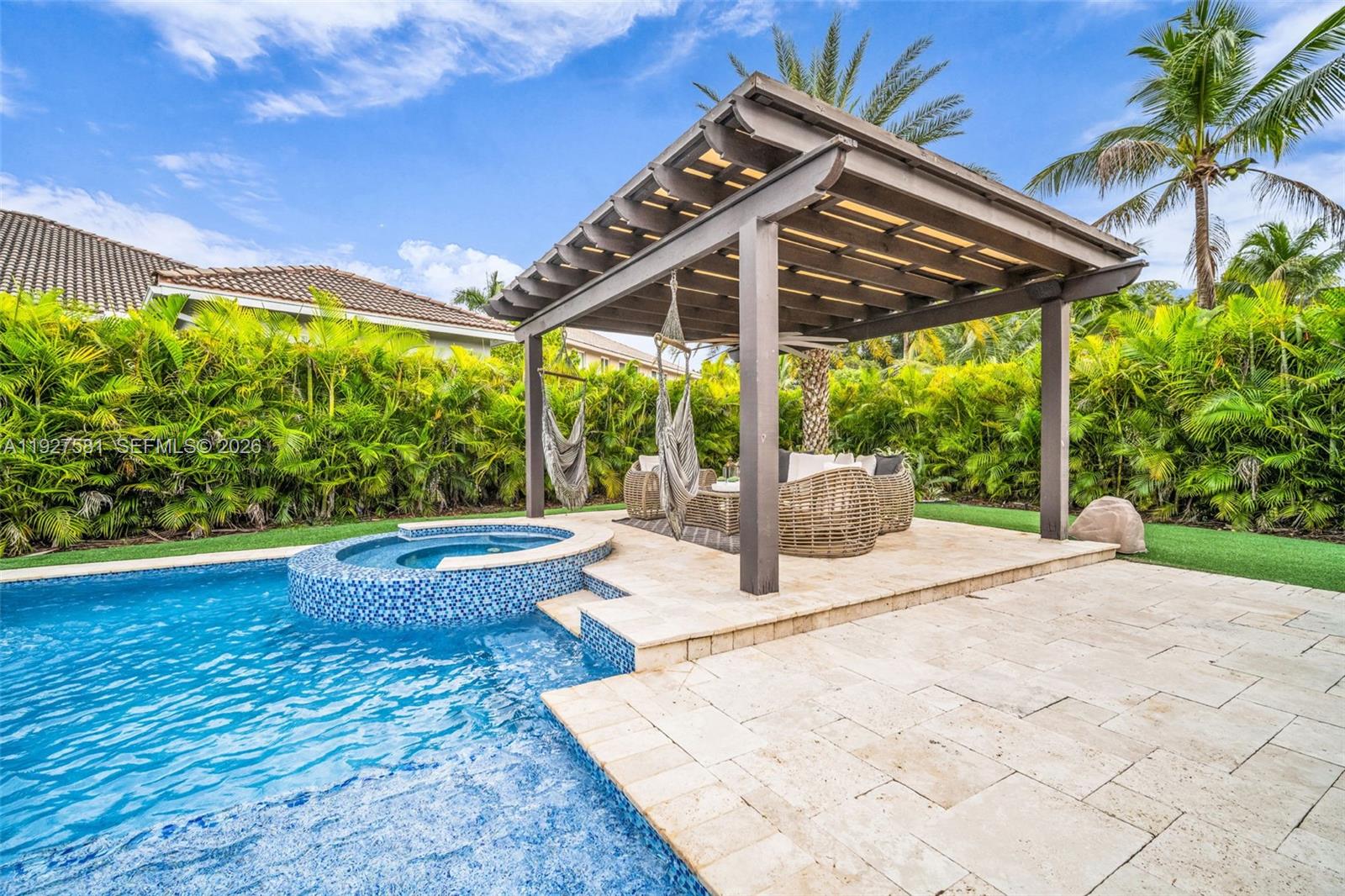 Welcome!! This exceptional luxury residence is a true statement of refined living, offering 5 generously sized bedrooms and 4 beautifully appointed bathrooms plus a ready-wire home theater that can easily be your 6th bedroom. The home features a fully equipped, ready-to-enjoy home theater that delivers an immersive cinematic experience. Outdoors, a stunning oversized modern pool becomes the centerpiece of a private retreat, complemented by an elegant pergola-gazebo that enhances relaxation and style. The expansive covered patio is an entertainer’s dream, featuring a complete summer kitchen with a wood-fired pizza oven, two premium barbecue with gas and charcoal burners, a wine cooler, and more, and an exquisite sitting area designed for memorable gatherings with family and friends. As you step inside, soaring high ceilings welcome you into a fully renovated split-floor plan, finished from floor to ceiling with impeccable taste and attention to detail. The home showcases top-of-the-line Wolf and Sub-zero appliances, luxurious quartz countertops, and designer finishes throughout. Fully smart-wired and controlled via mobile technology, this residence offers unmatched convenience and modern living. Ideally located in one of Weston’s most sought-after communities—Heron Ridge at The Ridges—this property represents the pinnacle of luxury, comfort, and lifestyle. Don't miss it!!
