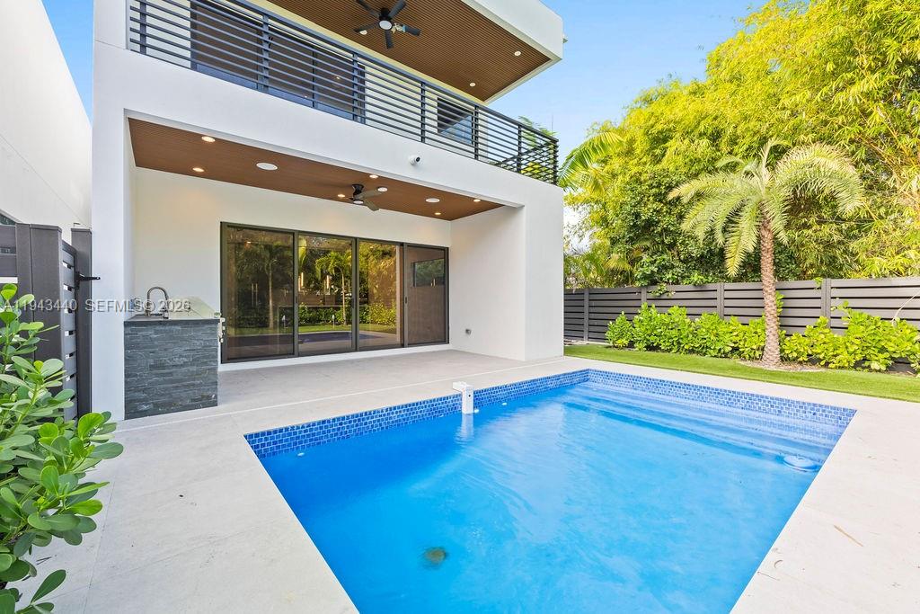 Exceptional new construction luxury townhome in the heart of Lake Ridge / East Fort Lauderdale. Final release—the last opportunity to own one of only four custom-built residences in one of Fort Lauderdale’s most desirable neighborhoods. Prime location just minutes to the beach, Las Olas Boulevard, and Downtown Fort Lauderdale. This architecturally striking home offers approx. 2,800 SF under air and showcases elevated modern design with top-tier finishes throughout. Interiors feature large-format Italian porcelain tile, a show-stopping porcelain chef’s kitchen with seamless custom cabinetry and built-in JennAir appliances, and a dramatic floating staircase that anchors the space. Designed for today’s lifestyle, the residence includes a first-floor bedroom, private balconies off every bedroom, expansive impact glass sliding doors, and a rare 2-car garage—an increasingly scarce feature in East Fort Lauderdale. The outdoor living experience rivals single-family homes, offering a private resort-style pool, summer kitchen, and a true usable backyard. Unique to this home is a private wellness retreat complete with sauna and cold plunge. Smart-home features include a pre-wired 3-zone audio system, security camera system, Ring doorbell, and Nest thermostat. Nothing compares at this price point in Fort Lauderdale. Ultra-rare product. Premium location. Limited availability—this home will move quickly.