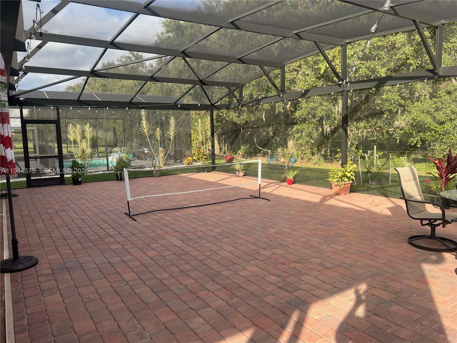 Beautiful kept 4 Bedroom & 2 bathroom home built in 2019 with one owner, Gated community with roaming guards! Home feature Barrel tile roof, screen front porch enclosed screen back Patio for grilling pickle ball and mosquito free. Two car garage and 4 car driveway. Lightly used appliance, Lawn water sprinkler included in monthly maintenance and some attic storage. Community offers Resort Style Living with Community Pool kiddie pool water slide hot tub, exercise gym, Children play room. Fishing and boating with some fishing competition. This home offers comfort security and convenience to shopping restaurant and Religious center.