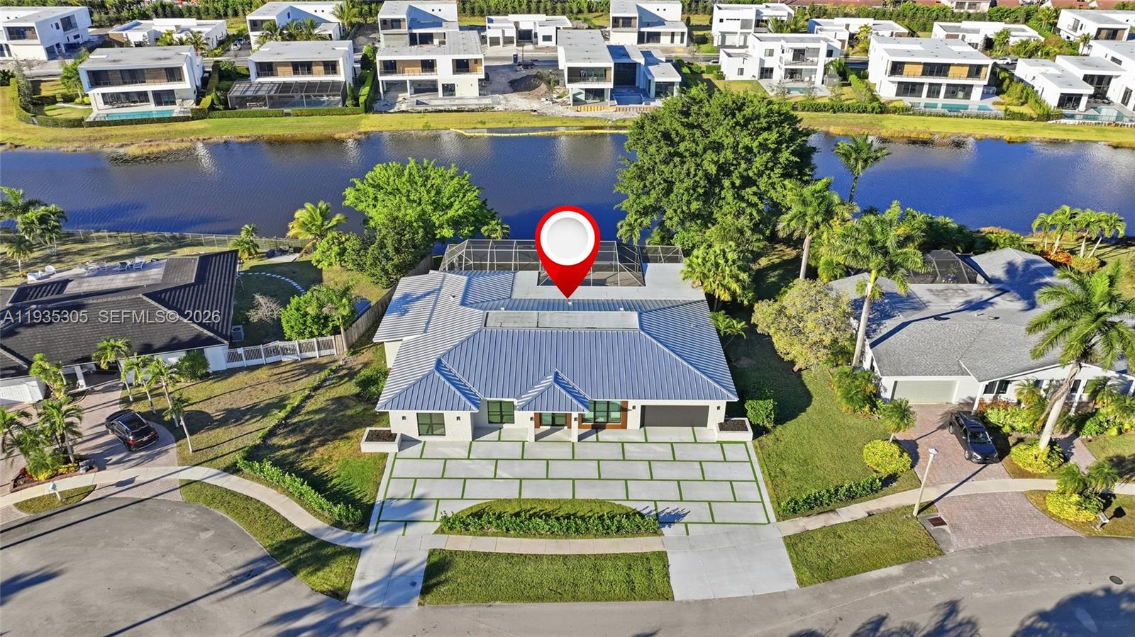 Below appraised value. $800,000+ in renovations completed. One of Weston’s most upgraded homes. This beautifully reimagined one story lakefront home sits on an oversized 0.38 acre lot and has been taken down to the studs and rebuilt with intention, quality, and timeless style. Featuring 5 bedrooms and 4 bathrooms, the home feels brand new with a full renovation that includes a new roof, full impact windows and doors, new flooring throughout, and high end finishes at every turn, including a high-end Italian kitchen with premium Veneta Cucine cabinetry, Dekton countertops, and new luxury appliances. The thoughtfully designed layout blends elegance with everyday comfort. Outside, a circular concrete driveway accented with turf creates a strong first impression, while the screened pool and patio with an additional spa and sauna overlook tranquil lake views ideal for relaxed outdoor living. A two car garage and new driveway complete the property. With new everything and no detail overlooked, this move in ready lakefront home offers a rare opportunity to enjoy modern living on a generous lot in a truly turnkey setting.