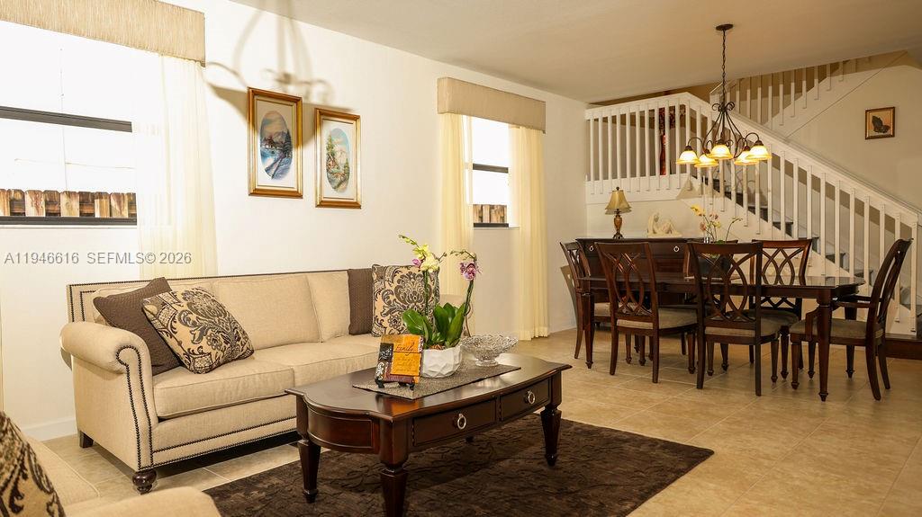 Step into this Beautiful well-maintained, move-in-ready Two-Story Home with 5- Bedrooms 3- Bathroom, 2- Car Garage owned and occupied by the same family since Construction!! The entrance into this spacious Living and Dining room features an electric Fireplace, while the family room flows into a large Kitchen with Stainless Steel Appliances a Walk-In Pantry, and a Breakfast Nook overlooking the Backyard. The First floor has an ensuite bed/bath with private entry making it ideal for Additional Income, Guests or an In-Law Suite. The Second Floor offers an Oversized Primary Suite and Walk-In Closet. The three additional Bedrooms with ample Closet space and easy access to the Laundry-room- located on the second with brand new Washer & Dryer. Upgrades include extended Pavers in the Backyard, Accordion Shutters, a reliable home Security System. Backyard has room for a Pool! With the low HOA - Enjoy the Resort-Style amenities - Gym, Clubhouse, Pool, Basketball Court, and Kids' Play area, also includes Front-yard Maintenance and added drive-by Security 24/7. Centrally located near Schools, Supermarkets, Expressways, and main Highway. Furniture available for purchase!!! JUST BRING YOUR CLOTHES!