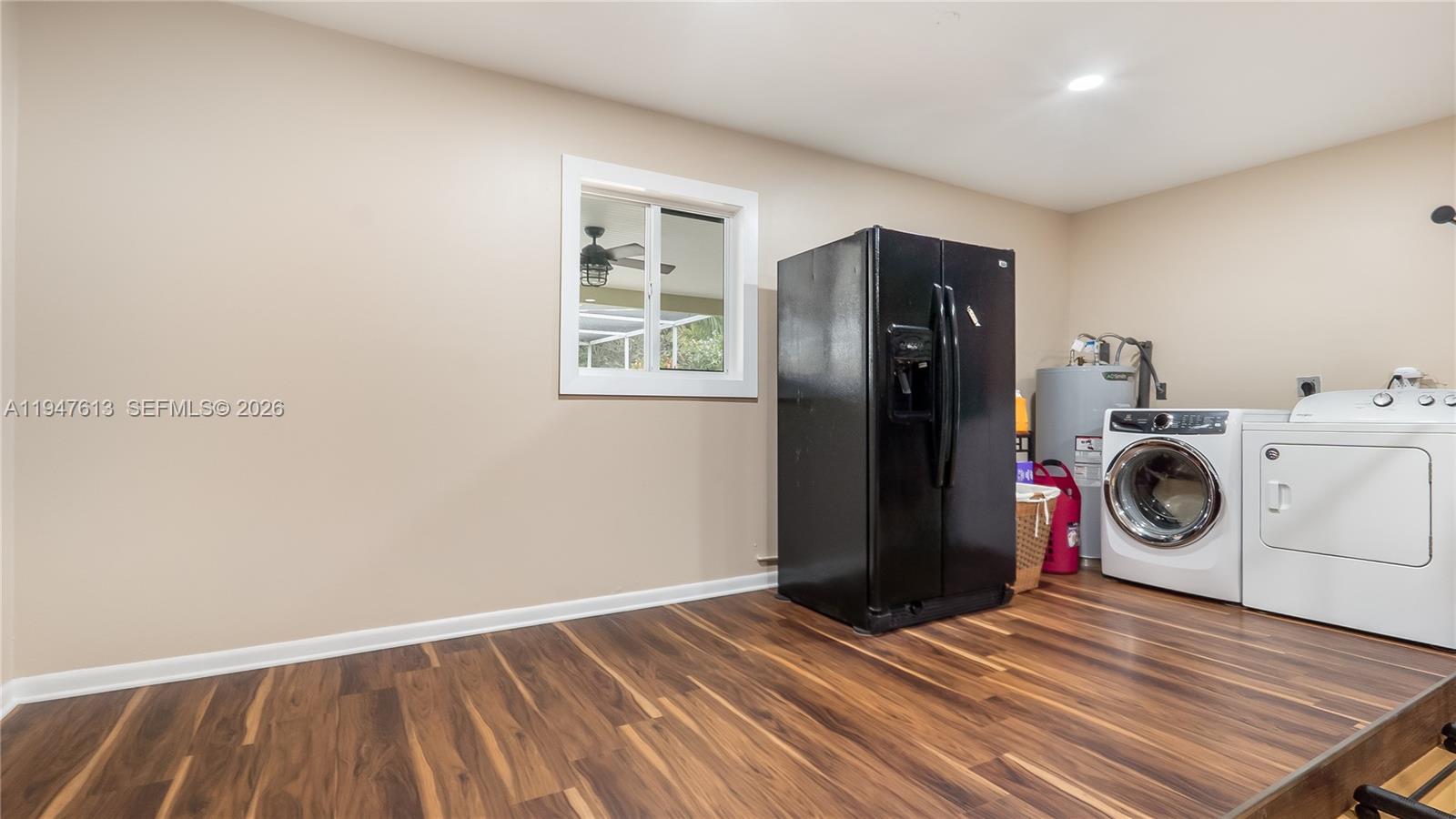 Welcome to this stunning 3-bedroom, 2-bath lakefront pool home on over an acre in the exclusive Davie Farmettes community. Designed for comfort and style, the property offers exceptional privacy and serene lake views. The open-concept layout is filled with natural light and enhanced by hurricane impact windows and doors. Recessed lighting, tile and luxury vinyl flooring, and plantation shutters create a bright, welcoming interior. The renovated kitchen features white cabinetry, granite countertops, stainless steel appliances, custom built-ins, a pantry, and a breakfast bar opening to the main living and dining areas. The primary suite is a private retreat with walk-in closet and en-suite bath. Spacious secondary bedrooms and a additional room offers flexibility for a home office or guests. Outdoor living is ideal for entertaining and relaxation, with an expansive screened patio overlooking the lake, a saltwater pool, new travertine tile and coping, lush tropical landscaping, hot tub and fire pit. The oversized lot offers excellent potential for expansion or customization. Additional highlights include NO HOA, a 2-car garage, extended driveway with RV or boat parking, metal roof, new PVC plumbing, a 2023 Rheem A/C, and custom storage shed. Conveniently located near shopping, dining, and major roadways, this is a rare opportunity to own a refined lakefront estate in Davie.