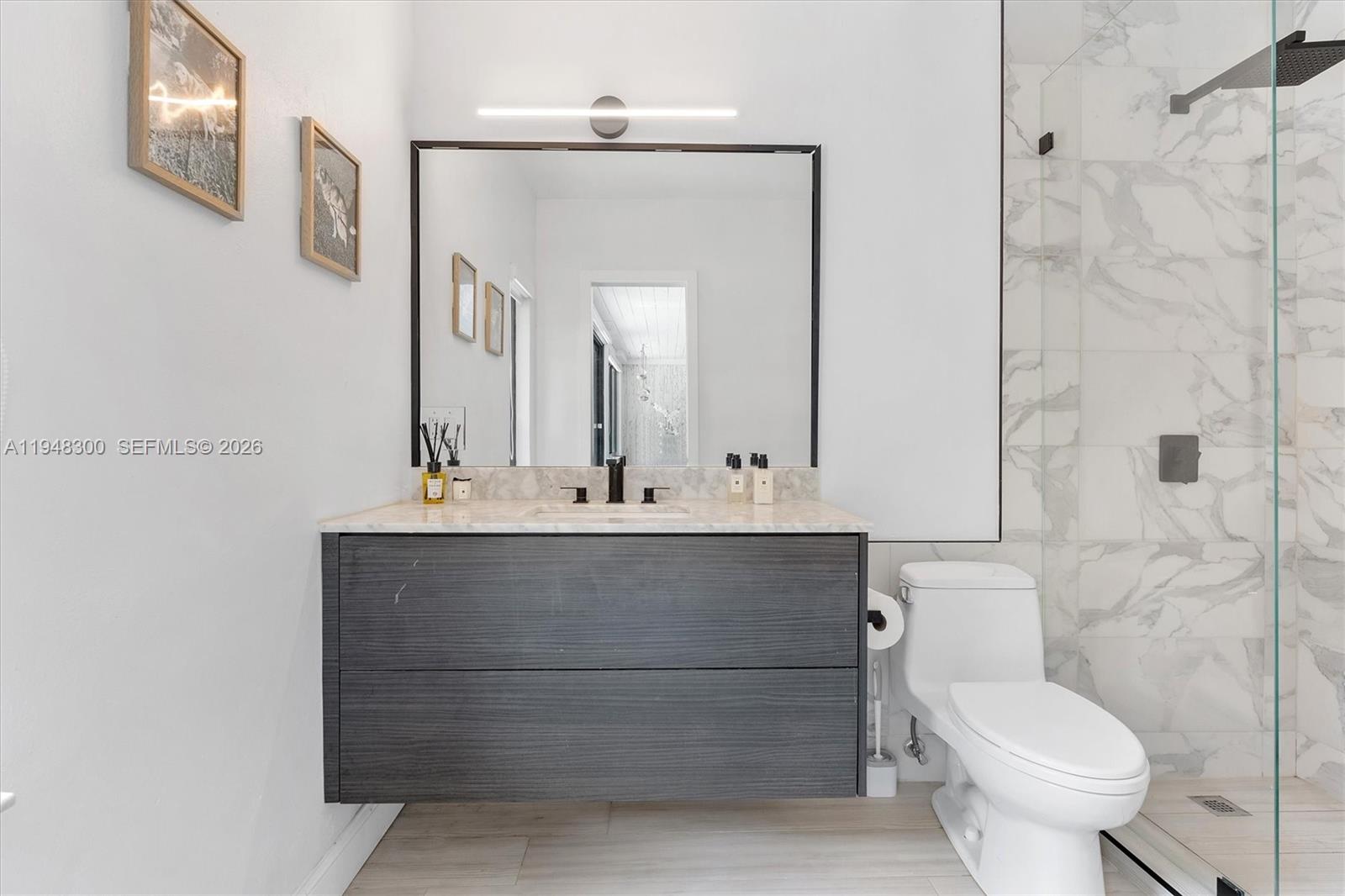 Quintessential Miami Shores Home! Located on a private street w/no through traffic. House is surrounded by mature trees giving it a sense of peace & serenity. Chef-inspired kitchen w/huge dolomite countertops island, Fulgor Milano gas range, wine cooler & tons of storage/cabinets. Enjoy spectacular views of your brand new pool w/lush landscaping from living/dining areas. Split bedroom plan. Spacious master suite that has a walk-in closet w/tons of natural light. The Master bath has 2 sinks, rain shower, and a tub. Separate laundry room. All impact windows & doors. 2 car garage. EV charger. A must-see!!