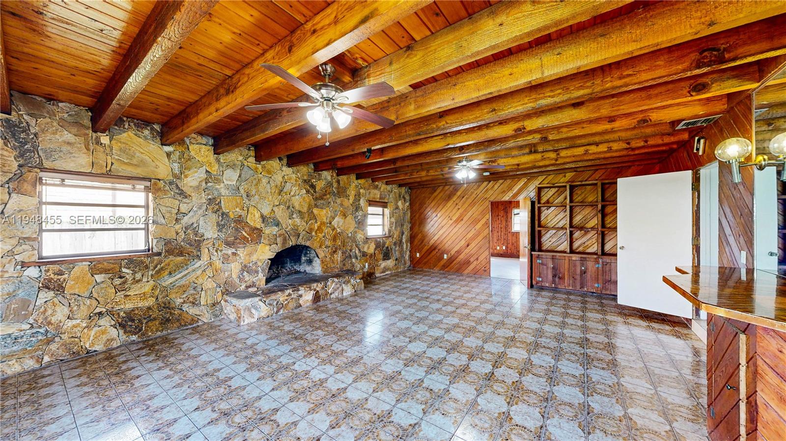 Welcome to this cozy single-family home with 4 bedrooms and 2 full bathrooms in the desirable Meadow Woods community. The open floor plan seamlessly connects the living, kitchen, and dining areas. The spacious family room showcases a stone fireplace, exposed wood-beam ceiling, wood paneling, built-in shelving, and tile flooring, creating a warm, rustic charm. Remodeled master bathroom will be completed before closing. Fully fenced yard offers ample space to park an RV or boat and includes an extra shed for storage. Extended driveway for multiple car parking. No HOA!!! Conveniently located just north of Homestead and close to Miami, with easy access to the Homestead Air Reserve Base, Turnpike, and Black Point Marina. Explore the 3D virtual tour with floor plans. May the Force be with you!