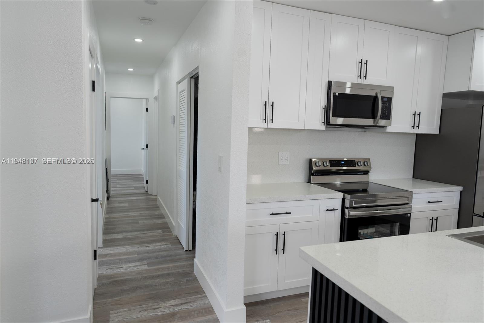 Fully Renovated 4 Bedroom, 2 Bath Single-Family Home ONLY 20 minutes from the Hard Rock Stadium! Larger than what appears on tax records (1517 sq ft). This property features a brand-new shingle roof, new high-efficiency central A/C, and a new Titan tankless water heater. The interior has been freshly painted and showcases a new modern kitchen with quartz countertops, new stainless steel appliances, and durable vinyl wood flooring throughout. Spacious primary bedroom with an en-suite bathroom, 4th room could easily be converted into a studio/efficiency. Enjoy a spacious fenced-in backyard with multiple mature fruit trees, ideal space for outdoor entertaining or for your dream pool. The property also features a shed for additional storage and tools. NO Association!