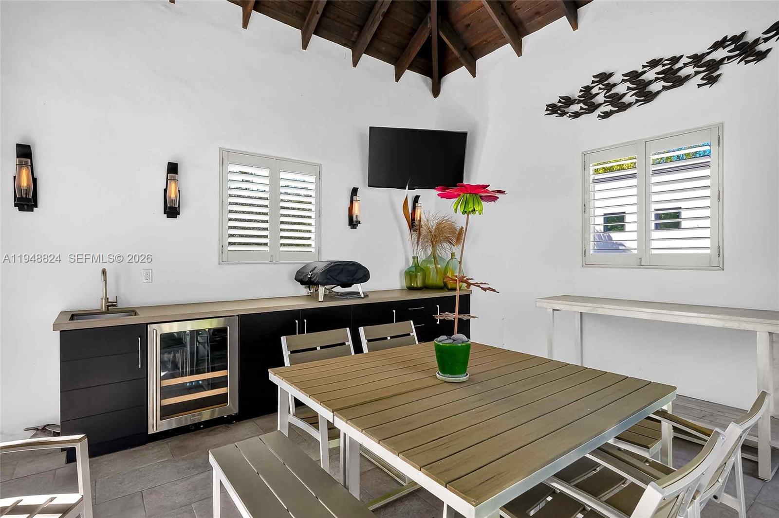 Exquisite North Coconut Grove sanctuary situated on one of the area’s quietest, tree-lined streets. This immaculate residence blends timeless elegance with modern comfort. Sun-filled interiors flow from a stunning chef’s kitchen with gas range into expansive living and dining areas with serene garden views. Custom woodwork and built-ins enhance the home’s refined character, complemented by two gas fireplaces. The spacious primary suite is filled with natural light and overlooks lush greenery, featuring a beautifully appointed spa-style bath with refined finishes and steam shower. Outdoor living is highlighted by a spectacular heated lap pool and a fully equipped summer kitchen with pizza oven, all surrounded by mature trees for exceptional privacy. Move-in ready with an updated interior totaling approximately 3,200 square feet, and ideally located near CocoWalk, Brickell, and Downtown Miami—an exceptional opportunity in one of Miami’s most sought-after neighborhoods.