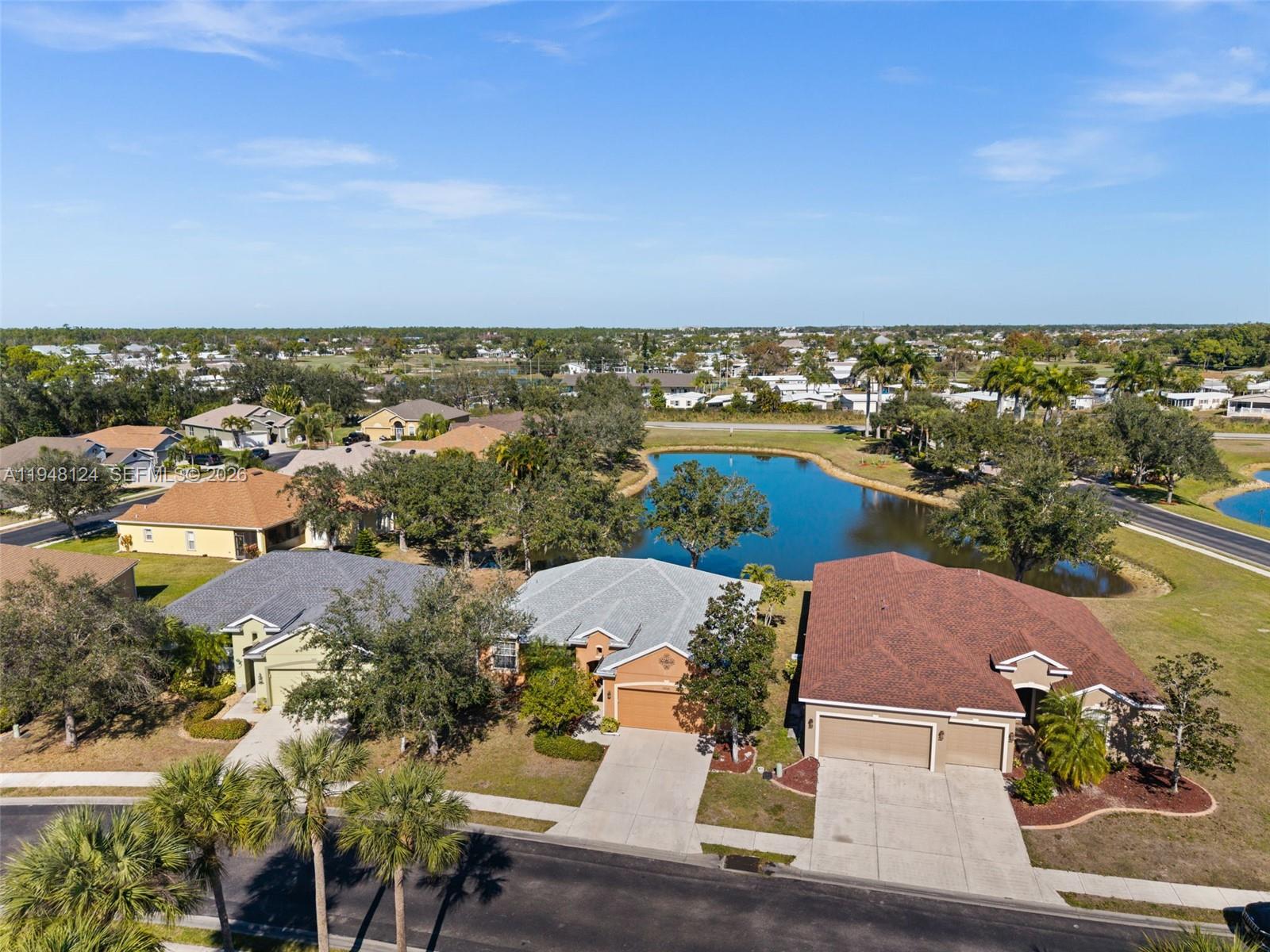 BEAUTIFUL WATER VIEWS! Welcome to 2868 Suncoast Lakes Blvd in Punta Gorda, located in the gated community of Suncoast Lakes. This well-maintained 2-bedroom, plus office, 2-bath home offers an open floor plan with peaceful pond views and comfortable indoor-outdoor living. The living room features a large sliding glass door that opens to the screened lanai, creating a bright and airy space that takes full advantage of the water view. The kitchen includes a breakfast bar, tile backsplash, and ample counter space, and opens to the adjacent dining area with pond views and direct access to the lanai. Just off the entry is a dedicated office with an arched window, ideal for working from home or a flexible space. The primary bedroom overlooks the pond and features a walk-in closet and an ensuite bath with dual sinks and a walk-in tiled shower. A split bedroom layout provides privacy for guests. Suncoast Lakes is a pet-friendly community offering a heated pool and park area, and is centrally located near shopping, schools, golf, downtown Punta Gorda, and Charlotte Harbor. Cable TV, internet, and irrigation water are included in the HOA fee. Best of all, this home is not located in a flood zone, making it an excellent full-time residence or seasonal retreat. NEW HVAC 2025, ROOF & GUTTERS 2022, WATER HEATER 2021, NEW APPLIANCES, NO FLOOD ZONE!