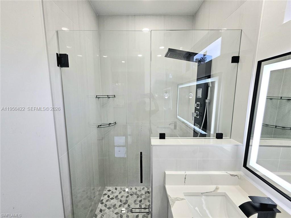 Beautiful new construction home located on a desirable corner lot in Lehigh Acres, conveniently near LaBelle and the Homestead area of Lehigh. This 3-bedroom, 2-bath residence offers 1,384 sq ft under air with a 2-car garage and a modern open layout enhanced by high vaulted (volume) ceilings, creating a bright and spacious feel throughout. The home features impact-resistant windows and doors and losa tile flooring throughout the entire home, including the garage, lanai, and front porch, providing a sleek, cohesive, and low-maintenance finish. The kitchen offers a functional L-shaped design with double entry access and flows seamlessly into the main living area—perfect for both everyday living and entertaining. The primary bathroom is thoughtfully designed with a walk-in shower featuring multiple shower heads, elegant finishes, and a modern LED mirror and dual sinks. The primary bedroom includes custom closet cabinetry, with additional built-in closet cabinets in one of the secondary bedrooms, offering excellent storage solutions. Additional highlights include a paved driveway with pavers, automatic irrigation system, tiled garage, open lanai, washer and dryer, and all appliances included. With its corner lot location, quality upgrades, and proximity to LaBelle, SR-80, and major connecting roads, this brand-new home offers modern comfort, durability, and convenience in a rapidly growing area of Lehigh Acres with no HOA.