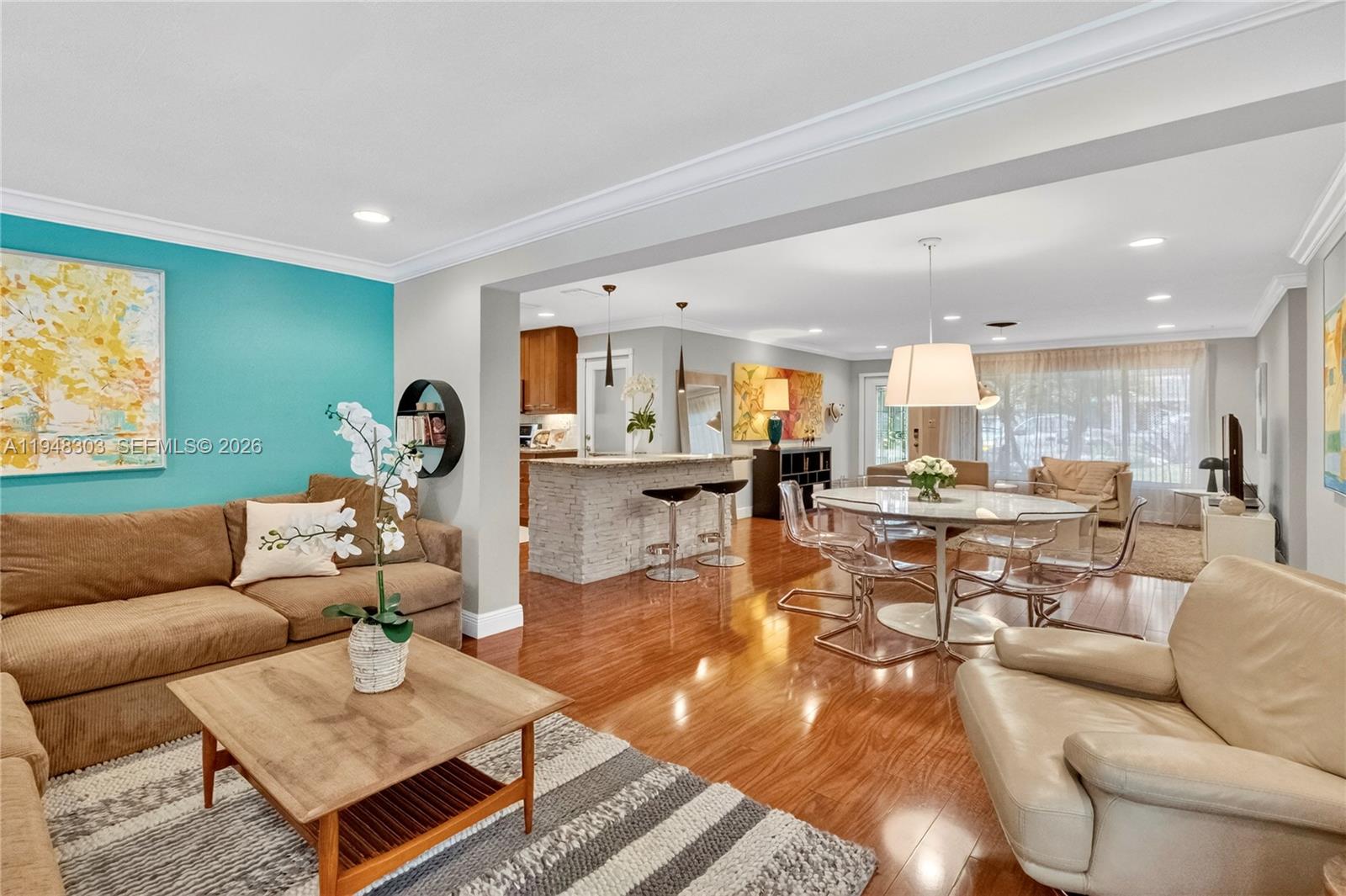 Impeccable 3-Bedroom, 3-Bath residence featuring two elegant primary suites, each with direct access to the poolside retreat. This beautifully maintained home showcases a gourmet kitchen with gas stove and wine cooler, along with expansive dining and living areas overlooking a stunning resort-style pool surrounded by lush tropical gardens, perfect for entertaining or everyday relaxation. Recent upgrades include a new roof, new driveway, and new pool water heater, while existing features include a saltwater pool system and all impact doors and windows, plus a garage for added convenience. Set on a generous corner lot just one mile from Commercial Beach, close to restaurants, cafés, and shopping. Offered furnished and equipped with a few exclusions. A rare opportunity, do not let it pass.
