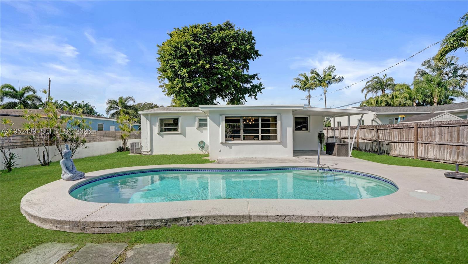 Timeless pool home in the heart of Hollywood, just a quick bike ride to Hollywood Beach, Hollywood Blvd, the YMCA, Farmers Market, Rotary Park, and TY Park. This well-maintained 3-bedroom, 1-bath residence features major upgrades, including a new roof, new electrical system with surge protection, new AC system, and a new kitchen with white quartz countertops and backsplash. All systems are under warranty. Outside, enjoy a private pool, covered patio, an extra-long driveway with ample parking, and classic Hollywood curb appeal. The spacious Florida room overlooks the pool and the third bedroom has a separate private entrance. This charming home maintains mid-century Hollywood character while thoughtfully brought forward. Perfect as a primary residence, vacation home, Airbnb, or rental investment.