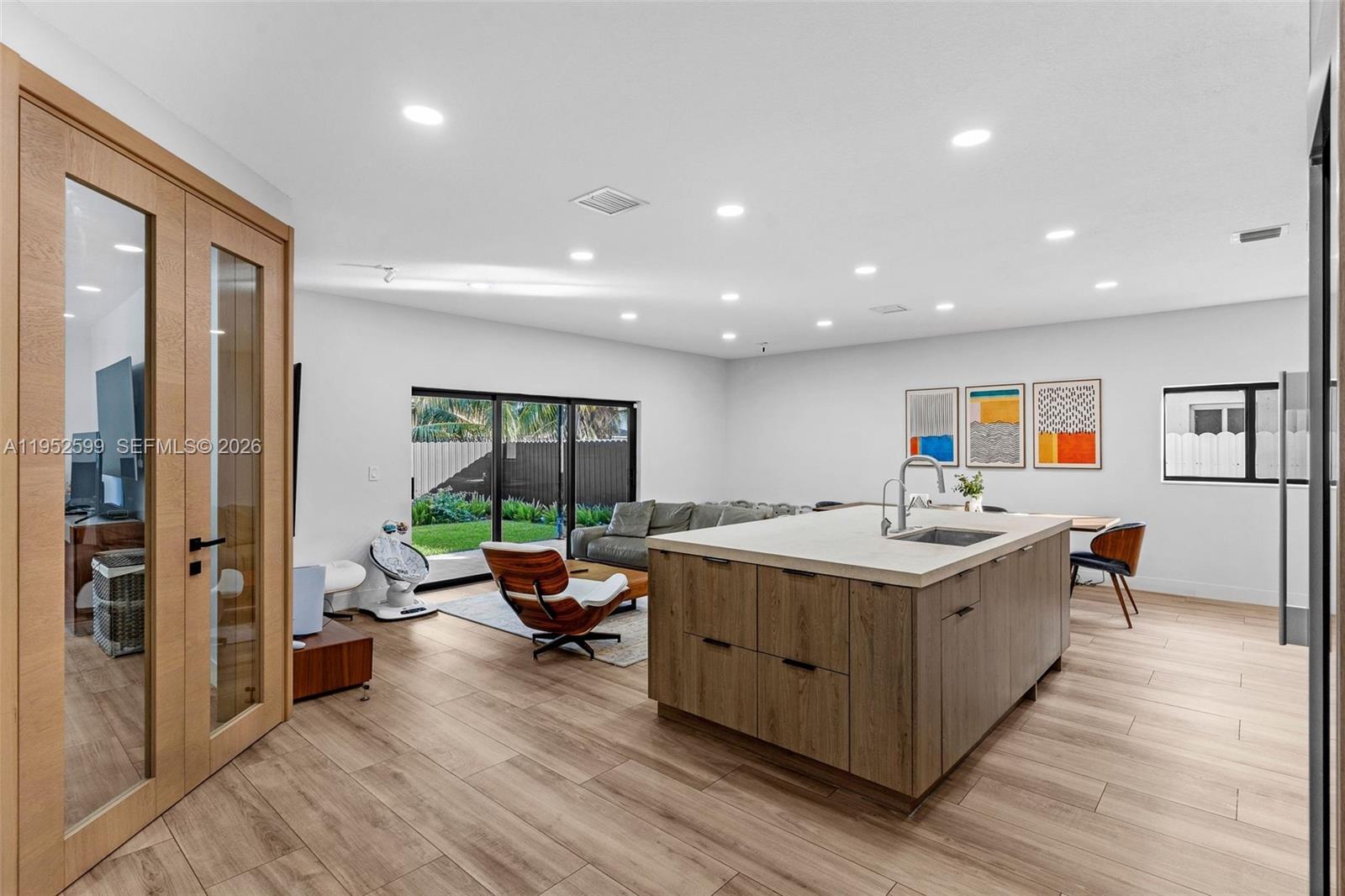 Discover your perfect home! Meticulously remodeled, the state-of-the-art kitchen boasts high-end Miele appliances, sleek cabinetry, and gorgeous quartz countertops. Soaring ceilings enhance the open, airy feel, while brand-new tile flooring adds sophistication throughout the home. Retreat to the serene bedrooms, each featuring custom high-end closets for optimal organization. Impact windows and doors provide safety and energy efficiency, adding to the home’s stylish appeal. The professionally landscaped front and back yards offer a lush, inviting environment. Every detail of this home has been thoughtfully designed to enhance your lifestyle. Experience the perfect harmony of beauty and functionality in a residence that truly has it all.