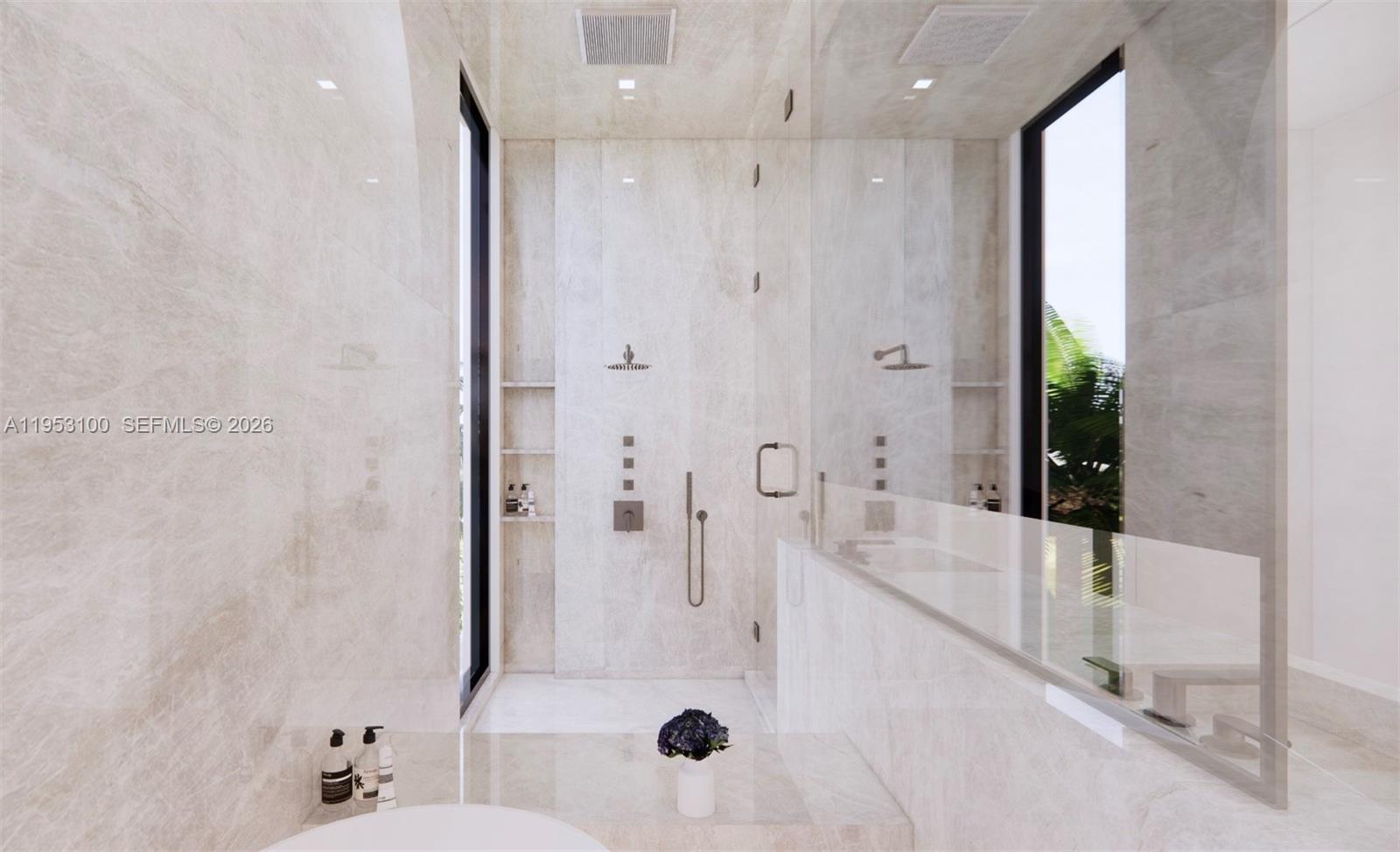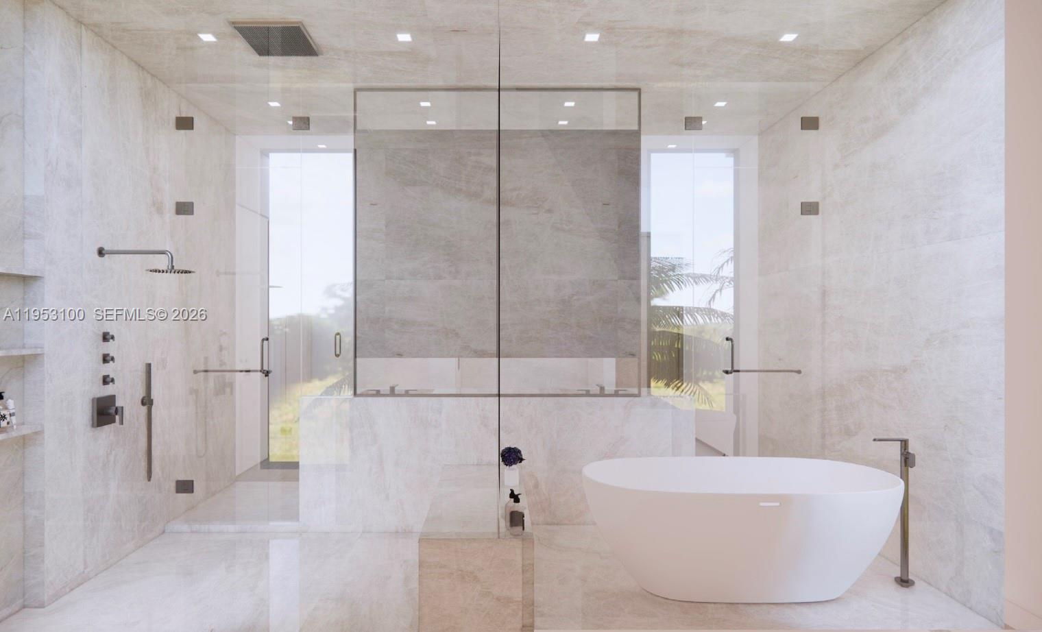 Welcome to 1230 101st Street, the only new construction home currently available in Bay Harbor Islands. Designed by SDH Studio and scheduled for completion in May 2026, this 8-bedroom, 9.5-bath residence delivers a masterclass in modern minimalism. The home spans nearly 8,500 total square feet, featuring a striking exterior of sandblasted Vena Grigio limestone and fluted stone detailing. Inside, the 5,797 square feet of living space is warmed by a custom walnut millwork package, minimalist and durable flooring on the first floor and elegant wood flooring throughout the second level. The heart of the home features a kitchen equipped with Doca custom cabinetry and Taj Mahal quartzite, while the primary suite serves as a serene retreat highlighted by book-matched natural stone. Designed for a seamless indoor-outdoor lifestyle, the property includes a lap pool, steam sauna, and expansive travertine terraces. Complete with an elevator and laundry rooms on both floors, this is a rare opportunity to own a custom, architecturally significant home in a premier location.
