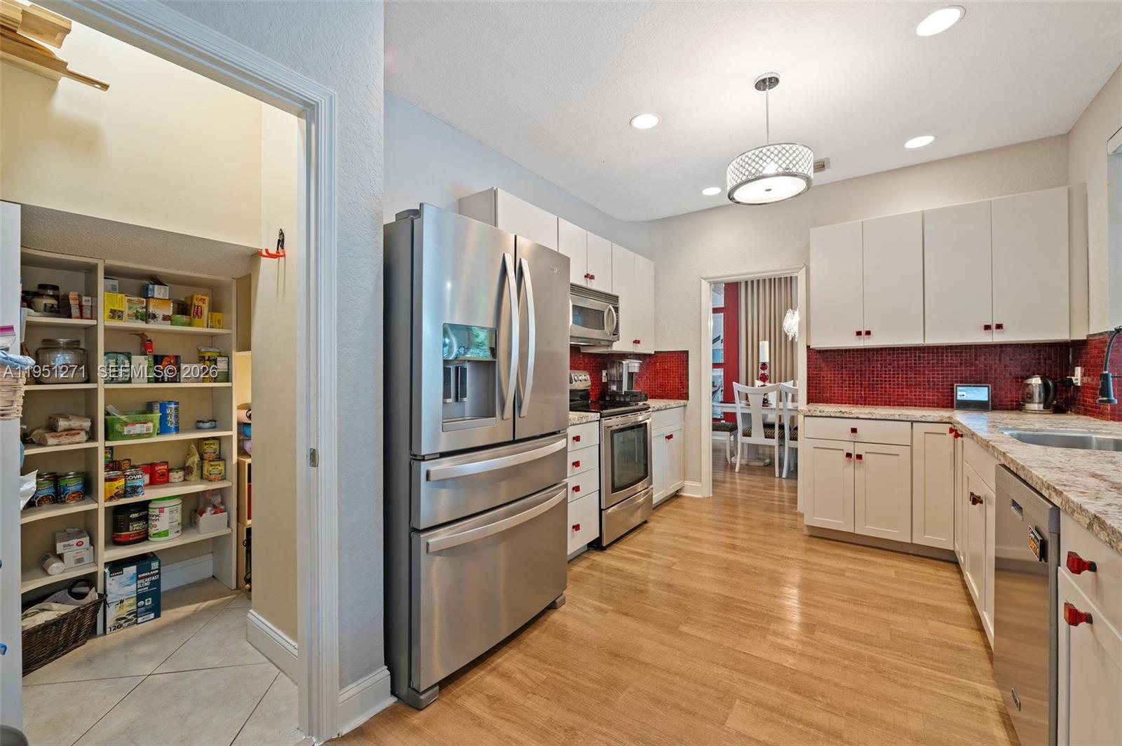 Designer renovated 3215 SqFt (adj) home and resort-style backyard in the sought-after Embassy Lakes community of Cooper City and its A-rated schools. The main living areas offer expansive views of a rare private backyard oasis with cabana, pool with travertine deck, and serene Zen garden with gazebo. Four bedrooms and three full bathrooms, including a custom-designed office/bedroom and full bathroom on the main level. A spacious open kitchen and family room has tons of cabinet space and an oversized walk-in pantry. The two-story vaulted living room is light-filled and grand. Upstairs, the large primary bedroom and spa-like bathroom offer peace and relaxation. Another bedroom has an open-air private balcony—a great place to unwind and enjoy the evening sunsets. The newly painted home is outfitted with impact windows, doors, and push-button roll down shutters. The flexible garage layout features a two-car garage on one side and a separate one-car garage on the other, allowing for three-car parking or space for a playroom, home gym, office, or conversion to an additional bedroom. Embassy Lakes has staffed and gated entrances, beautifully landscaped public space dotted with lakes, a community center, an enormous pool, a gym, tennis, pickleball, and basketball courts, and the relaxed, friendly vibe that has earned Cooper City its reputation as one of the best places to raise a family in Florida. Looking for a home that combines style, comfort, and community? You just found it!