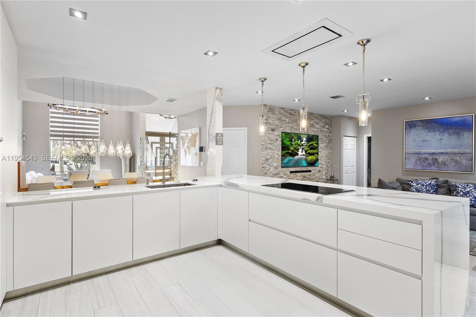 Indulge in refined luxury and timeless elegance in this exceptional 5 bedroom, 3 bath residence. The gourmet chef’s kitchen is impeccably appointed with Sub Zero appliances, a dual temperature wine cooler, and bespoke designer finishes that elevate both form and function. Sophisticated porcelain and ceramic flooring with an authentic wood inspired finish flows throughout the home, enhancing its polished aesthetic. The main level features a private bedroom with a full bath, ideal for distinguished guests or effortless multigenerational living. Additional highlights include impact resistant windows, a garage with premium epoxy flooring and custom storage, and a lushly landscaped garden, a serene setting perfectly suited for elegant entertaining. A truly remarkable home where modern luxury meets enduring comfort, curated to perfection in every detail.