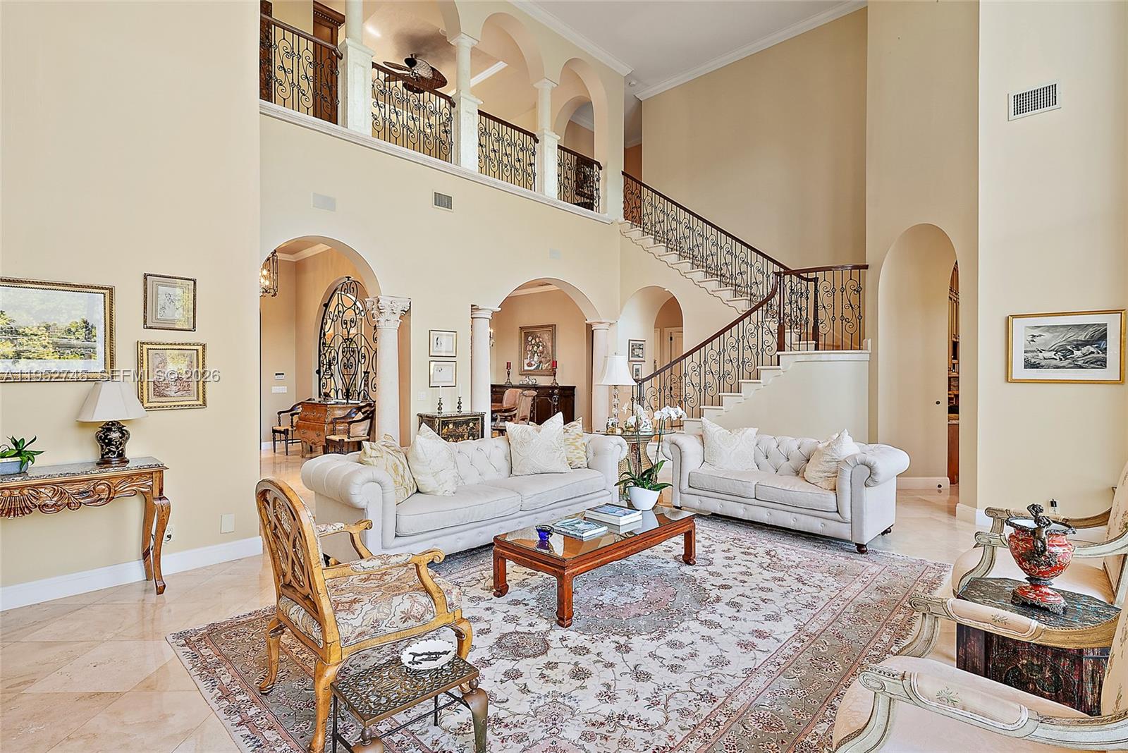 Rarely available waterfront estate priced under $1,000 per square foot! This expansive home offers 90 feet of prime waterfrontage, accommodating up to a 70-foot yacht with no fixed bridges. The backyard was completely reimagined in 2025 with a new heated salt water pool and spa, all new landscaping, hardscaping, and phantom screens. Inside, the home features six en-suite bedrooms, a private office, loft, dedicated storage rooms, and an oversized club room ideal for entertaining. One of the few homes in Harbour Isles with a true four-car garage and proper auto court. Finished with Wolf and Sub-Zero appliances, marble floors, solid wood doors, and full impact windows. Just minutes from the best shopping and dining. This is a must-see opportunity!