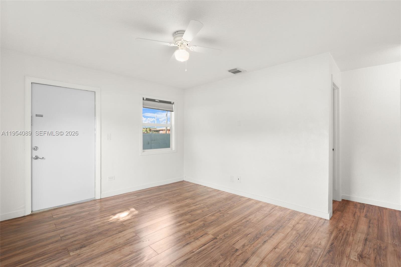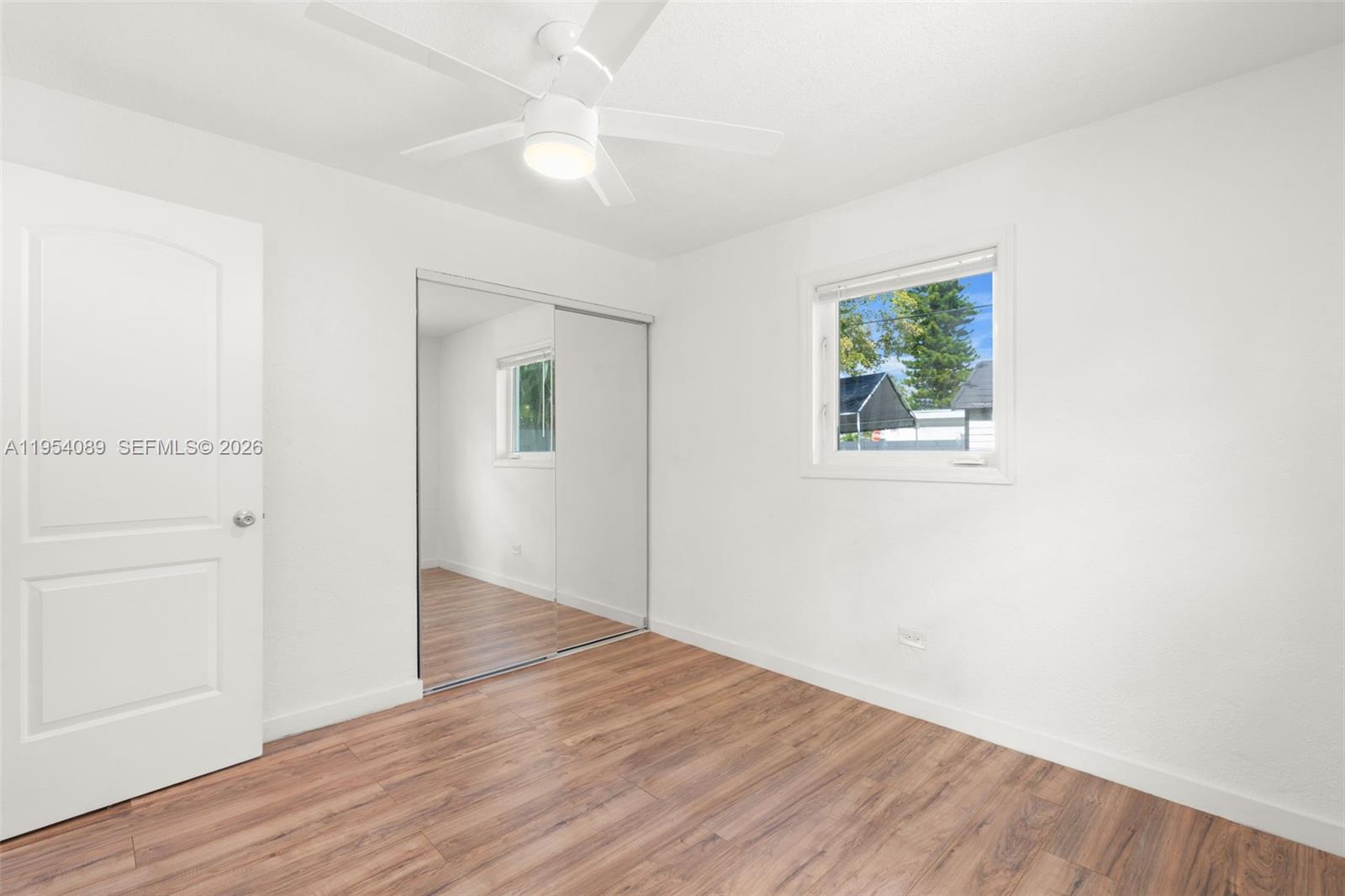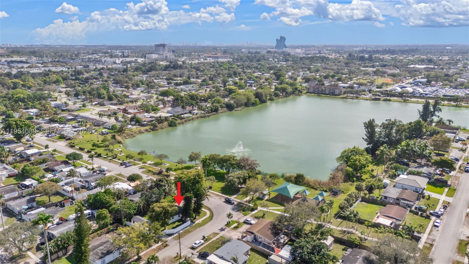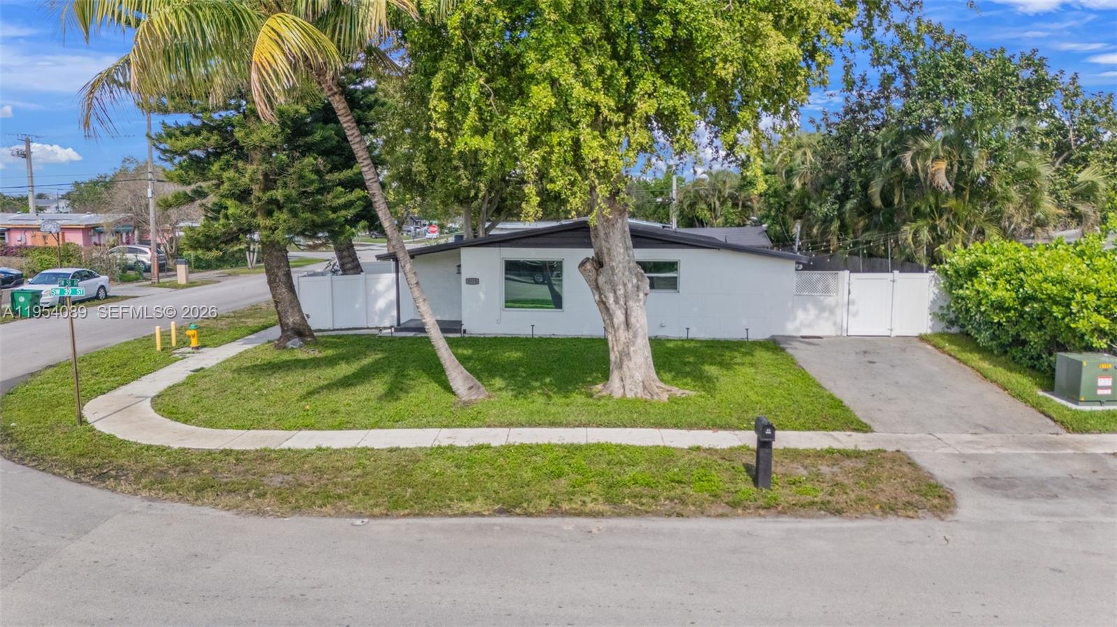 This is a great starter home on huge FULLY FENCED corner lot. Updated 2 bedroom / 1 bathroom with HURRICANE IMPACT WINDOWS. Kitchen has white shaker cabinets with stainless steel appliances and laminate counter tops. Refrigerator is less than a year old. The bathroom is light and bright with a tub/shower combination. Laminate flooring throughout. There is a NEST thermostat and RING doorbell at the front door. Enjoy the view of the lake, located across the street, while in the living room and kitchen. There is also a children's playground across the street as well. The neighborhood has sidewalks for added safety. Utility closet has newer Samsung front load stackable washer and dryer. Tankless hot water heater assures you you'll never run out. There are two separate driveways, one of which is covered and inside the gate of the fenced yard. You'll also enjoy the huge workshop in the backyard with electricity. Plenty of room for your tools, mower, motorcycle or other hobbies. Sprinkler system is on well water and inside the house is city water. This home is on a septic tank with a new drain field. Roof is approximately 9 years old and AC is approximately 8 years old. This home is just a few minutes to Davie Road near Broward College, FAU, Nova Southeastern, and other schools. Plenty of shopping and restaurants nearby. Easy access to the Turnpike, I-595, I-75.