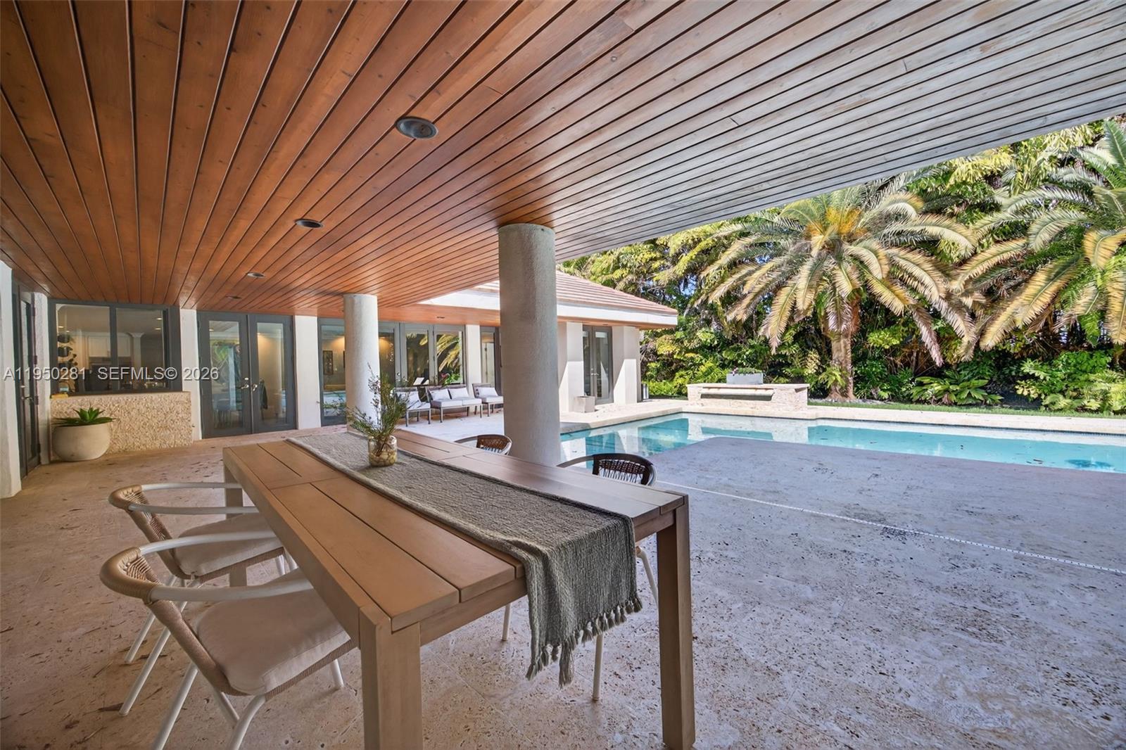 Set on a lush corner lot within a quiet Pinecrest cul-de-sac, this 5-bedroom, 4-bath residence offers the kind of space, privacy, and flow that’s increasingly hard to find. Vaulted ceilings and abundant natural light create an airy feel throughout the main living areas, all oriented toward the backyard for seamless indoor-outdoor living. The kitchen is the true heart of the home — generously sized, beautifully appointed, and designed to anchor everyday life as well as entertaining. From here, the layout opens effortlessly into the living and dining spaces, with pool views and a striking fireplace adding warmth and character. The primary suite enjoys direct views of the pool and backyard, along with a spa-inspired bathroom that feels both calming and refined. Impact windows and doors throughout, a covered patio, and a resort-style pool with waterfall enhance comfort, security, and year-round enjoyment. Thoughtfully located in the heart of Pinecrest, this home offers easy access to major roadways, top-rated A+ schools, parks, and everyday conveniences — all while maintaining a sense of privacy and retreat. A well-balanced home where design, location, and livability come together.
