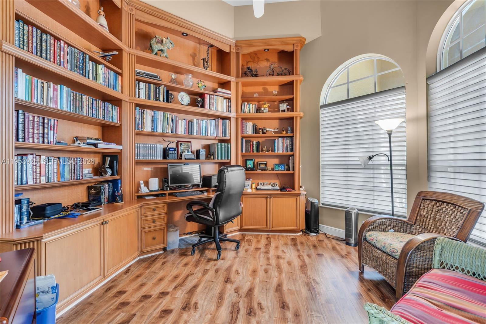Welcome to an exceptional residence in the prestigious gated community of Stonebrook Estates, where timeless Mediterranean elegance meets modern comfort. This beautifully designed custom-built 5-bedroom, 4-bathroom home with a private office and master sitting room offers 4,783 total sf of spacious living on a builder's acre. A grand entry with custom doors opens to soaring volume ceilings and expansive windows that fill the home with natural light. The thoughtfully designed split floor plan provides privacy and functionality, featuring spacious secondary bedrooms and a serene primary suite with tranquil backyard views and a spa-like bath. The open-concept kitchen flows seamlessly into the main living areas, ideal for both everyday living and entertaining. Step outside to a lush, tropical backyard with mature fruit trees, a swimming pool, summer kitchen and a covered patio perfect for relaxing or hosting gatherings. Located in a secure, sought-after community close to top-rated schools, shopping, dining, and major roadways, this home offers the perfect blend of luxury, space, and convenience.