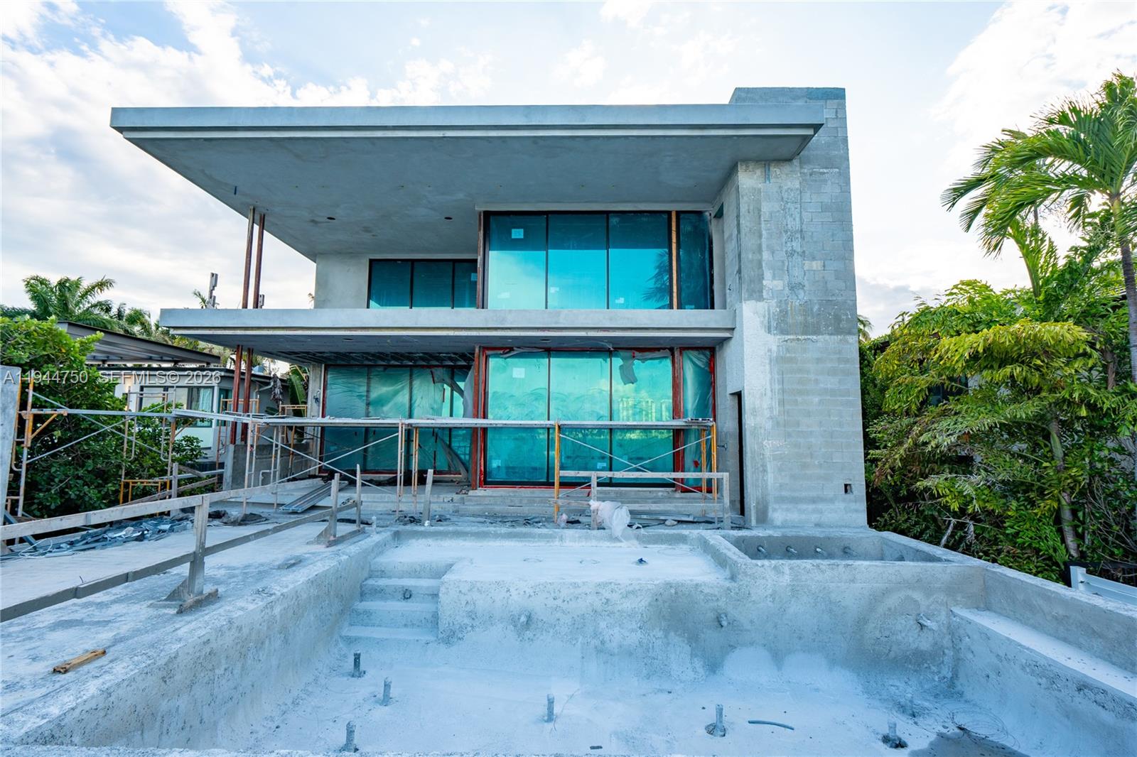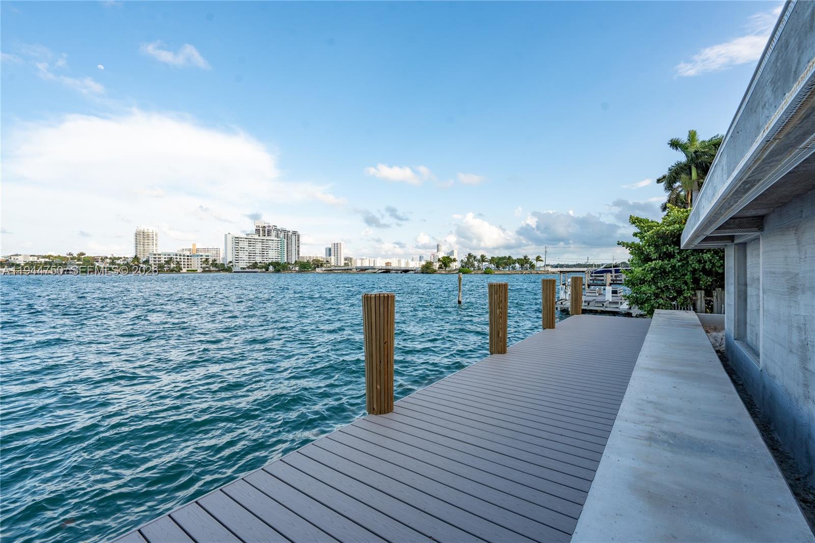 Luxury waterfront home being built with dramatic evening views of the Miami Beach skyline. Designed by Praxis Architecture, this 5 bed 5 and 1/2 bath home has 5,400 sq foot of living space under AC, with an additional 2,600 sq foot of understory with 9 foot height clearance for parking 5 cars, gym, storage area, games. Open floor plan with sliding telescopic doors for effortless indoor-outdoor living. Expansive primary suite includes a private covered patio. Featuring exquisite French oak flooring, marble bathrooms, this home offers a refined blend of elegance and functionality. The property boasts a covered summer kitchen, pool, dock with lift, and a rooftop terrace providing uninterrupted 360-degree views. Completion expected winter 2026.