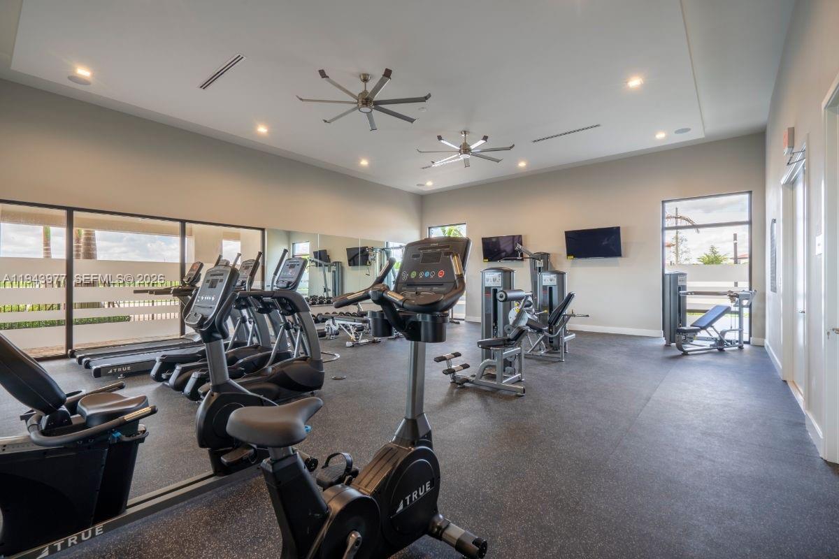 BEST VALUE in Aquabella! Own the largest floorplan with full upgrades at the best price in this gated, resort-style community. This beautifully maintained 3-bed, 2.5-bath townhome is truly move-in ready with freshly painted interiors, impact windows and doors, and solar panels keeping the electric bill at a low monthly cost. Enter into a large, inviting open-concept living and dining area ideal for entertaining. The oversized kitchen with newer stainless steel appliances flows seamlessly into an additional living space, perfect for everyday comfort. Step outside to a private spacious patio with artificial turf and gazebo, backing to open landscape with no rear neighbors—a rare and ideal setting. Porcelain tile flooring downstairs and newly installed laminate flooring upstairs add both style and durability. The primary and second bedroom offer walk-in closets. Additional features include in-unit washer/dryer, plumbing ready for an external water filtration system, smart home features including Ring camera, and ADT security system. HOA now includes AT&T internet. Two assigned parking spaces are conveniently located directly in front of the unit. Enjoy resort-style amenities with 2 clubhouses, pools, 2 gyms, kids splash zone, and year-round community events. This is a fee simple townhome which allows for flexible financing options, including 3.5% or 5% down. A must-see!