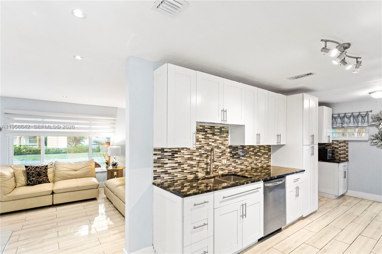 Updated 3-bedroom, 2-bath corner-lot home featuring a brand-new 2025 roof and impact windows throughout. Tile flooring thru-out the entire home. The kitchen offers white shaker cabinetry, beautiful black granite countertops, and stainless steel appliances. Both bathrooms have been updated and feature walk-in showers. Washer and Dryer. Tankless hot water heater. Enjoy a spacious fenced yard with a convenient carport. Ideally located near schools, shopping, and dining.