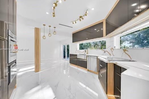 Fully remodeled lakefront home featuring 5 bedrooms, 3 full bathrooms, and 2,595 sq ft of living area. One bedroom with a full bathroom is conveniently located on the first floor. Built in 2006, the home offers a new modern kitchen with brand-new appliances, a new water heater, impact windows, and high ceilings throughout. Ceramic tile flooring on the first floor and laminate flooring on the second floor enhance its modern appeal. The primary suite and other bedroom includes a private terrace with stunning lake views. No HOA. The 6,000 sq ft lot provides ample outdoor space with room for a boat and new construction pool. Two-car garage. Prime location near top-rated schools, shopping, and dining. Move-in ready waterfront property.