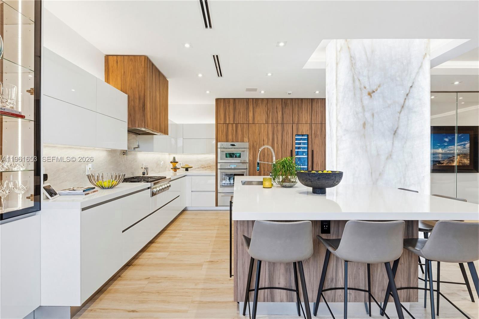 Introducing Seaglass Pointe, Luxury Waterfront Living Redefined. Thoughtfully reimagined from the ground up, Seaglass Pointe is a one-of-a-kind luxury waterfront residence where exceptional design meets extraordinary water views from every level. This fully redesigned home offers over 5800 sq ft, 3 bedrooms & 5.5 baths, with the flexibility to easily convert back to a 4-bedroom layout. Each bedroom is a private ensuite with walk-in closets, creating a retreat-like experience throughout the home. No detail was overlooked from impact windows & doors & a newly installed metal roof to all-new plumbing, electrical, A/C systems & a private elevator servicing every floor. The chef’s kitchen, outfitted with top-of-the-line appliances, flows seamlessly into expansive living & entertaining spaces designed to embrace the surrounding water views. Outdoors, a heated pool & TWO private boat slips directly behind the residence create the ultimate South Florida boating lifestyle. The crown jewel is a spectacular rooftop entertaining level featuring indoor–outdoor living & a temperature-controlled glass wine cellar, the perfect setting for sunset gatherings overlooking the water. Located within a prestigious guard-gated waterfront community, residents enjoy resort-style amenities including a private sandy beach, tennis/pickleball courts, clubhouse, gym, heated pool/spa, nature trails & a scenic waterfront boardwalk. Seaglass Pointe is more than a home — it’s a statement in waterfront living.