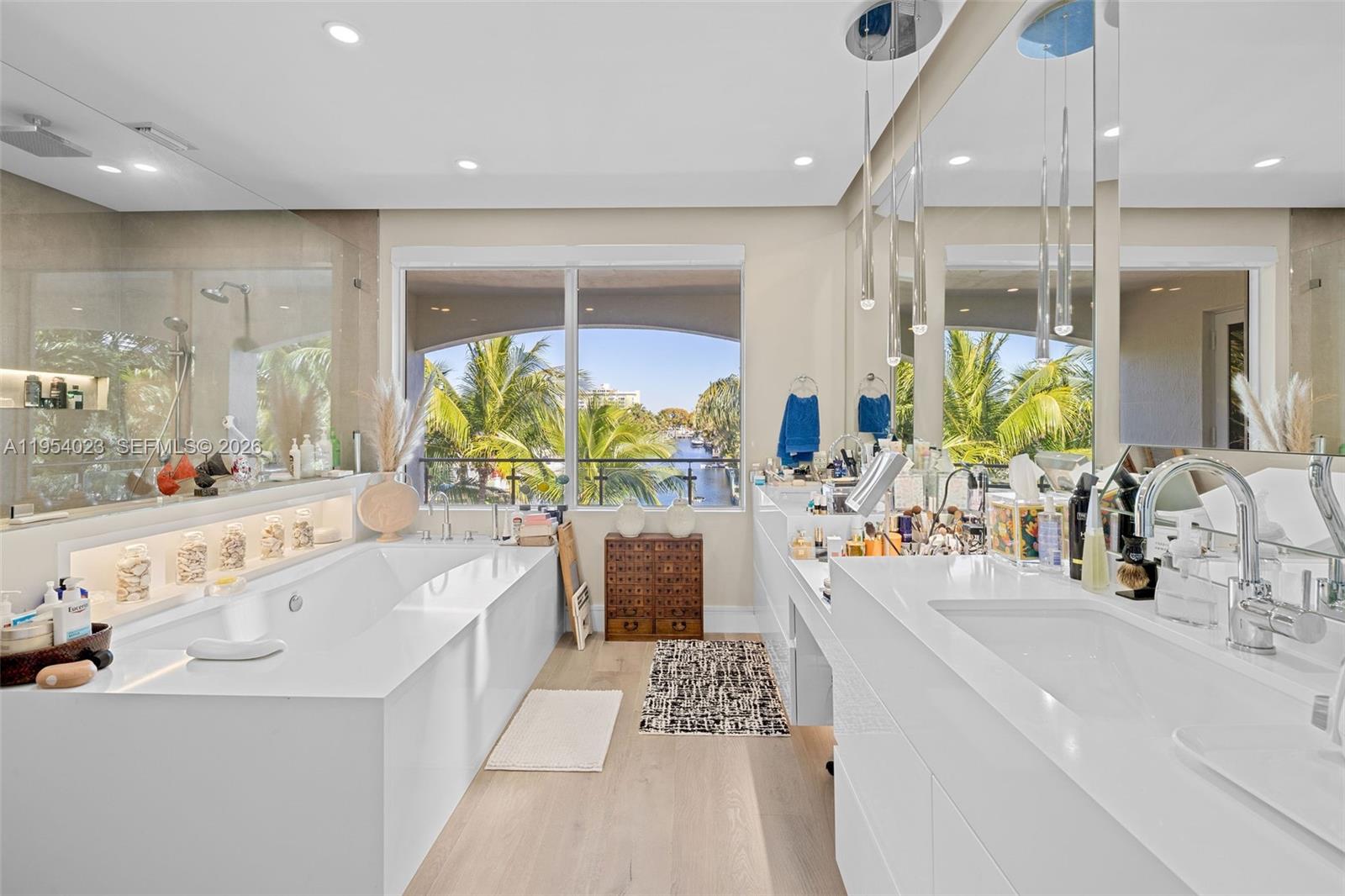 Experience the pinnacle of waterfront living in this magnificent, remodeled custom estate. Spanning 4,331 square feet of meticulously designed living space, this residence greets you with breathtaking water views the moment you step through the front door. With over $500,000 in recent bespoke upgrades, no detail has been overlooked. The interior features elegant marble flooring throughout and a chef’s dream kitchen equipped with professional-grade Wolf appliances. Designed for the modern connoisseur, the home is a fortress of efficiency and security, featuring hurricane-impact windows, solar panels with dual Tesla Powerwalls, and a comprehensive smart-home system with integrated cameras. Outside, enjoy a resort-style lifestyle with a fully equipped outdoor kitchen and a private 75-foot dock. Situated on deep water with no bridge restrictions, you have direct, seamless access to the bay. Located just minutes from the world-class shopping and dining of Bal Harbour and Bay Harbour, this home offers the ultimate South Florida lifestyle. All measurements, square footage, and dimensions are approximate and for illustrative purposes only. Listing broker/agent has not verified this information and makes no warranties or representations as to the accuracy thereof. Buyer is advised to independently verify all measurements and to perform their own due diligence.